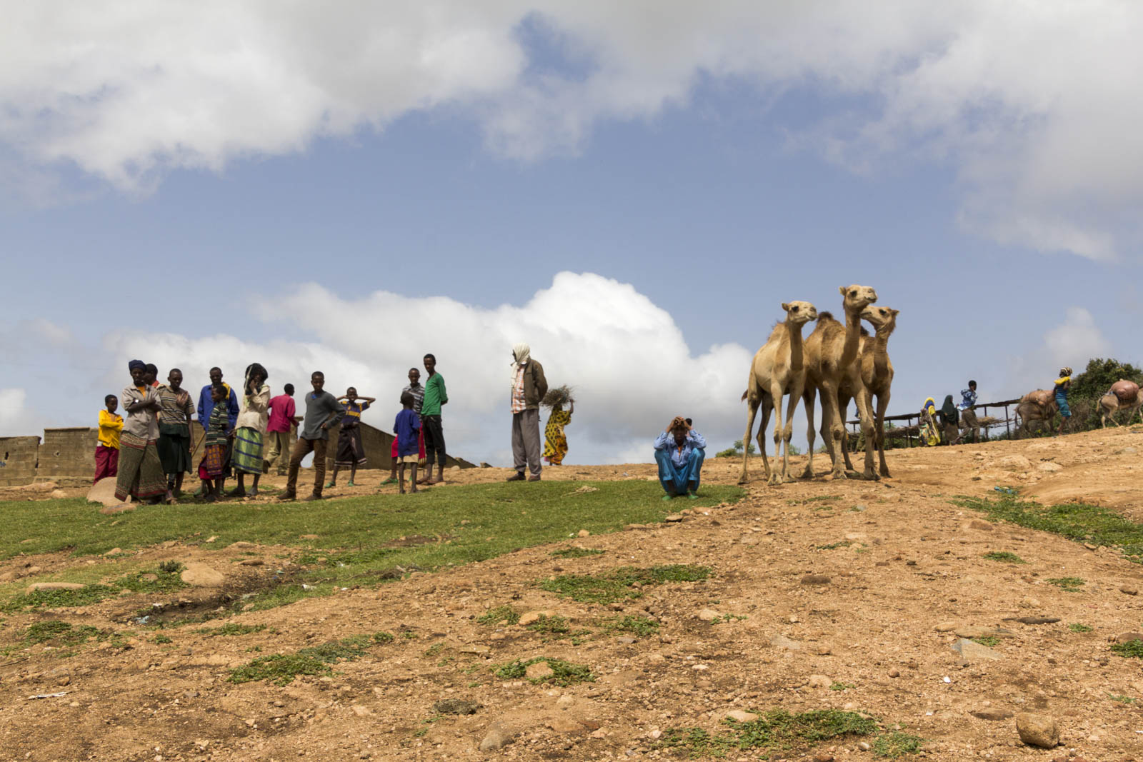 Pour ceux qui d’aventure souhaiteraient rester plus d’une journée à Harar, il y a aussi des choses sympas à faire en dehors de la ville. Notamment le lundi et le jeudi, il y a le marché au bétail de Babille, l’un des plus grands du coin. C’est même le plus important marché aux dromadaires de toute la région : acheteurs et vendeurs venus de tout l’Est de l’Ethiopie, de Djibouti et du Somaliland s’y retrouvent, autour d’un bon millier de dromadaires à chaque fois ! Malheureusement, peut-être à cause du ramadan, nous sommes arrivés un poil trop tard et avons juste croisé le dernier acheteur (ou vendeur) en chemin, repartir avec une vingtaine de bêtes. Arrivés sur le marché, il ne restait plus que trois pauvres dromadaires égarés, et les vendeurs de bœufs et de chèvres, ce qui est quand même un peu moins intéressant.
