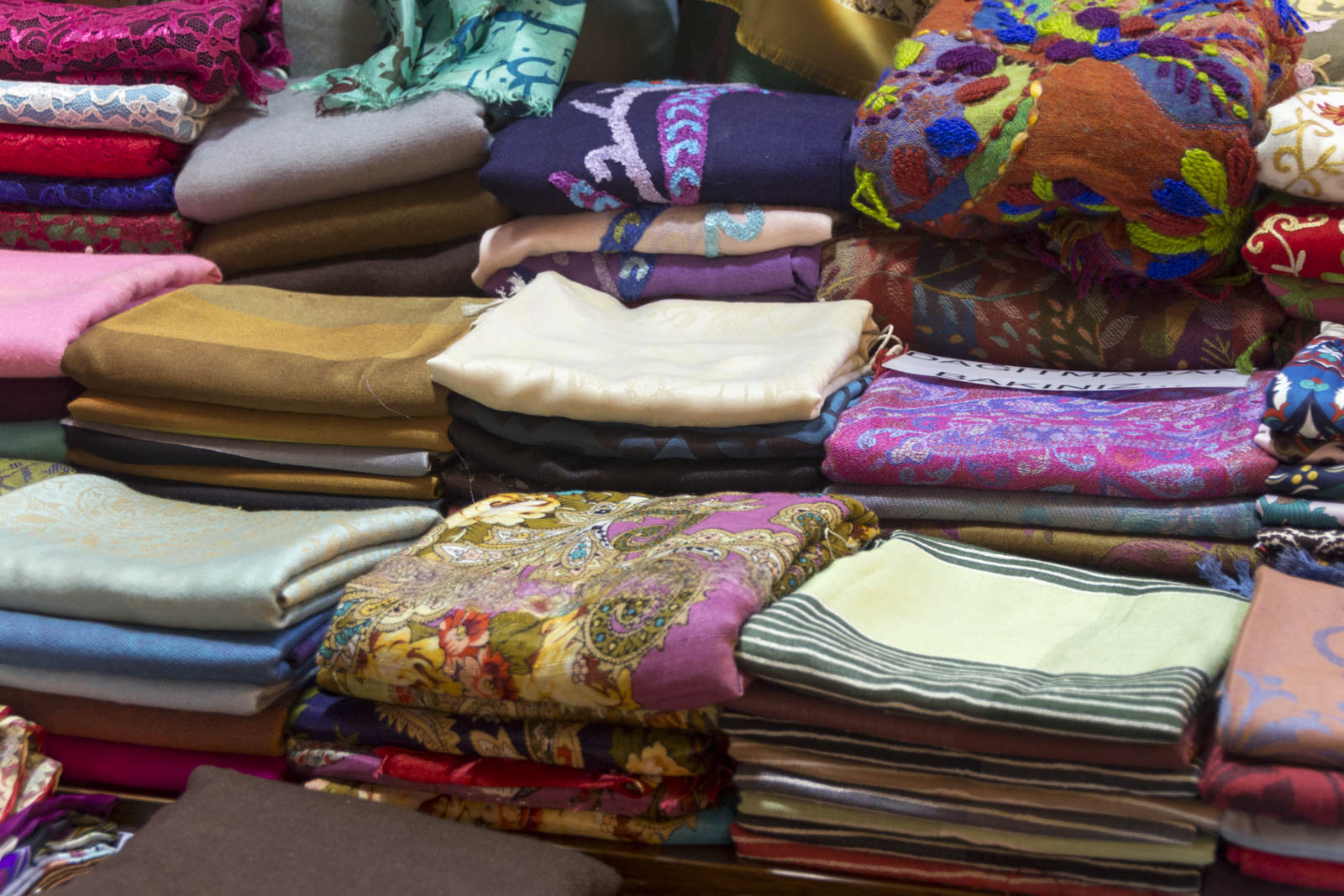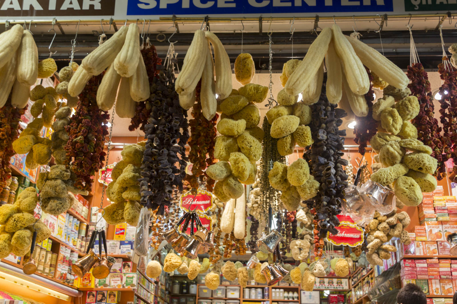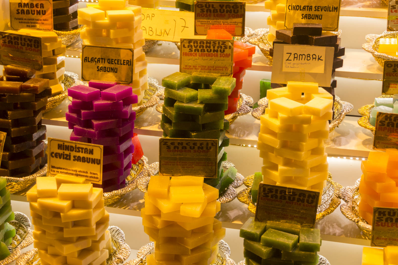 Outre les monuments magnifiques, il y a bien d’autres choses dont on a profité à Istanbul. Se perdre dans le dédale du grand bazar ou dans les senteurs du bazar aux épices, par exemple. Les différentes boutiques de part et d’autre des allées sont certes plus ou moins intéressantes, mais au moins, ici, on laisse le temps aux gens de se balader, de regarder, de sentir, sans se jeter sur eux ou leur portefeuille au premier regard. Point plutôt surprenant, l’ordre et le quasi-silence qui règnent dans ces bazars. A moins qu’on ne soit pas venus à l’heure de pointe…