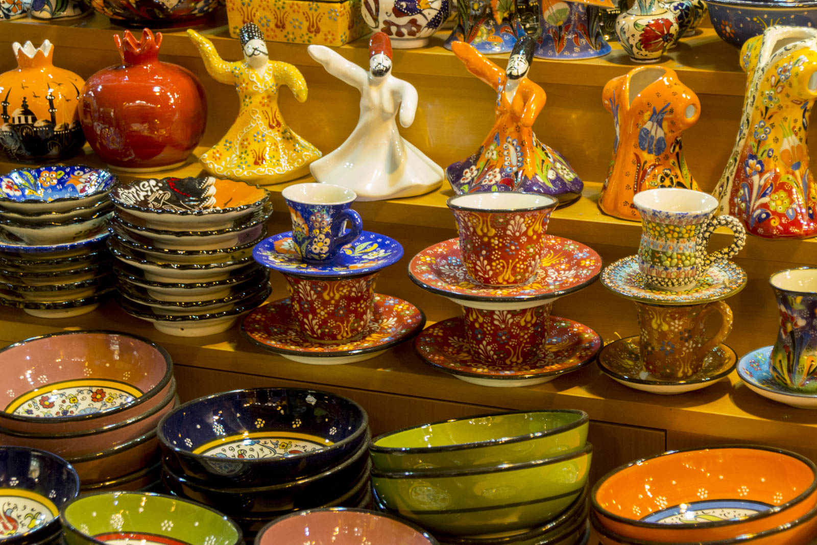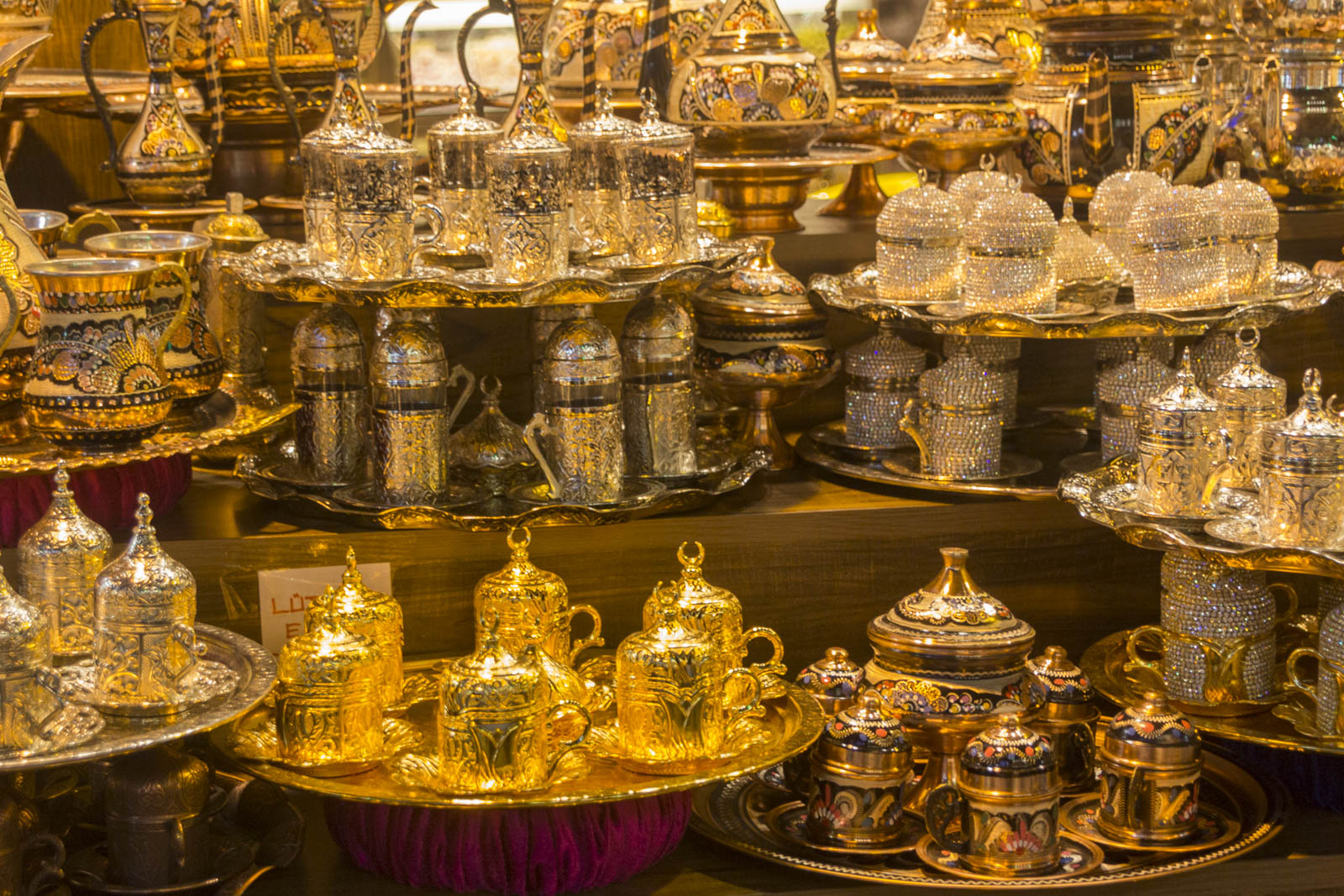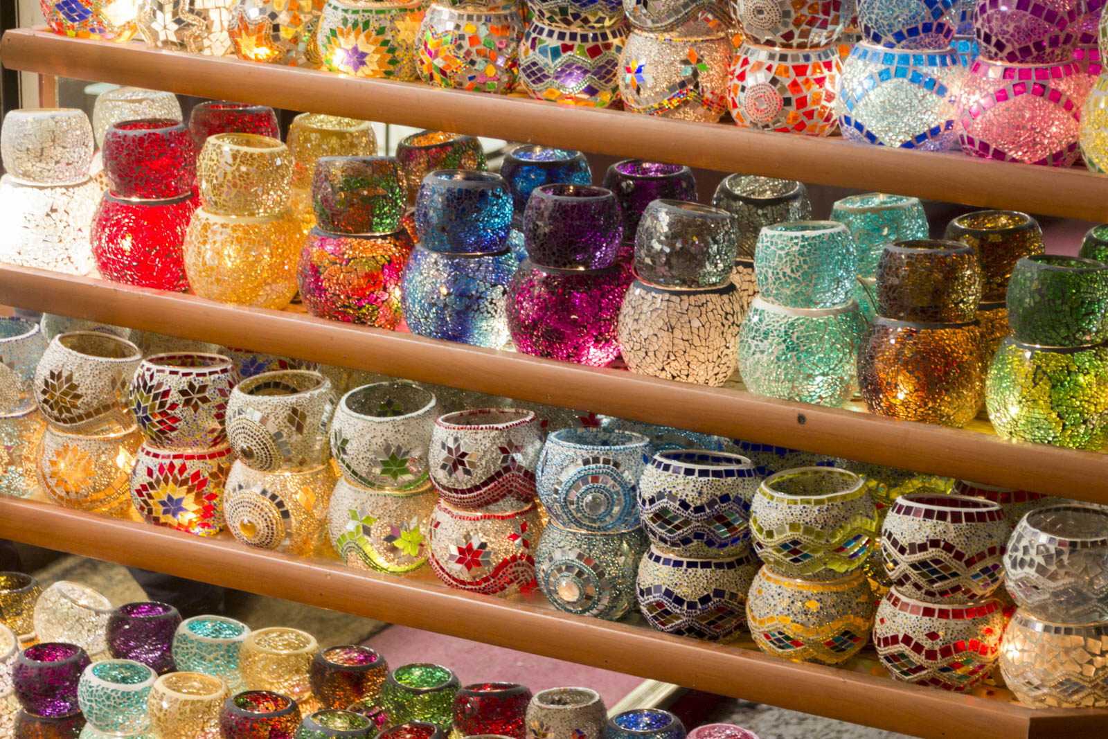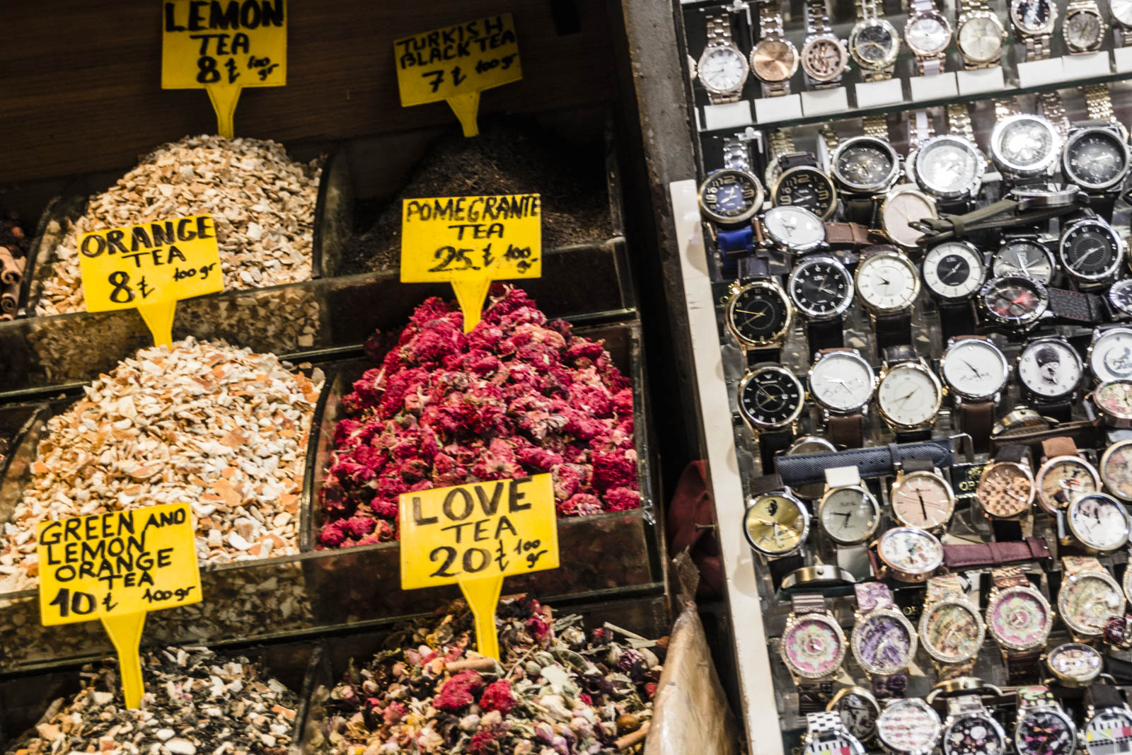 Outre les monuments magnifiques, il y a bien d’autres choses dont on a profité à Istanbul. Se perdre dans le dédale du grand bazar ou dans les senteurs du bazar aux épices, par exemple. Les différentes boutiques de part et d’autre des allées sont certes plus ou moins intéressantes, mais au moins, ici, on laisse le temps aux gens de se balader, de regarder, de sentir, sans se jeter sur eux ou leur portefeuille au premier regard. Point plutôt surprenant, l’ordre et le quasi-silence qui règnent dans ces bazars. A moins qu’on ne soit pas venus à l’heure de pointe…