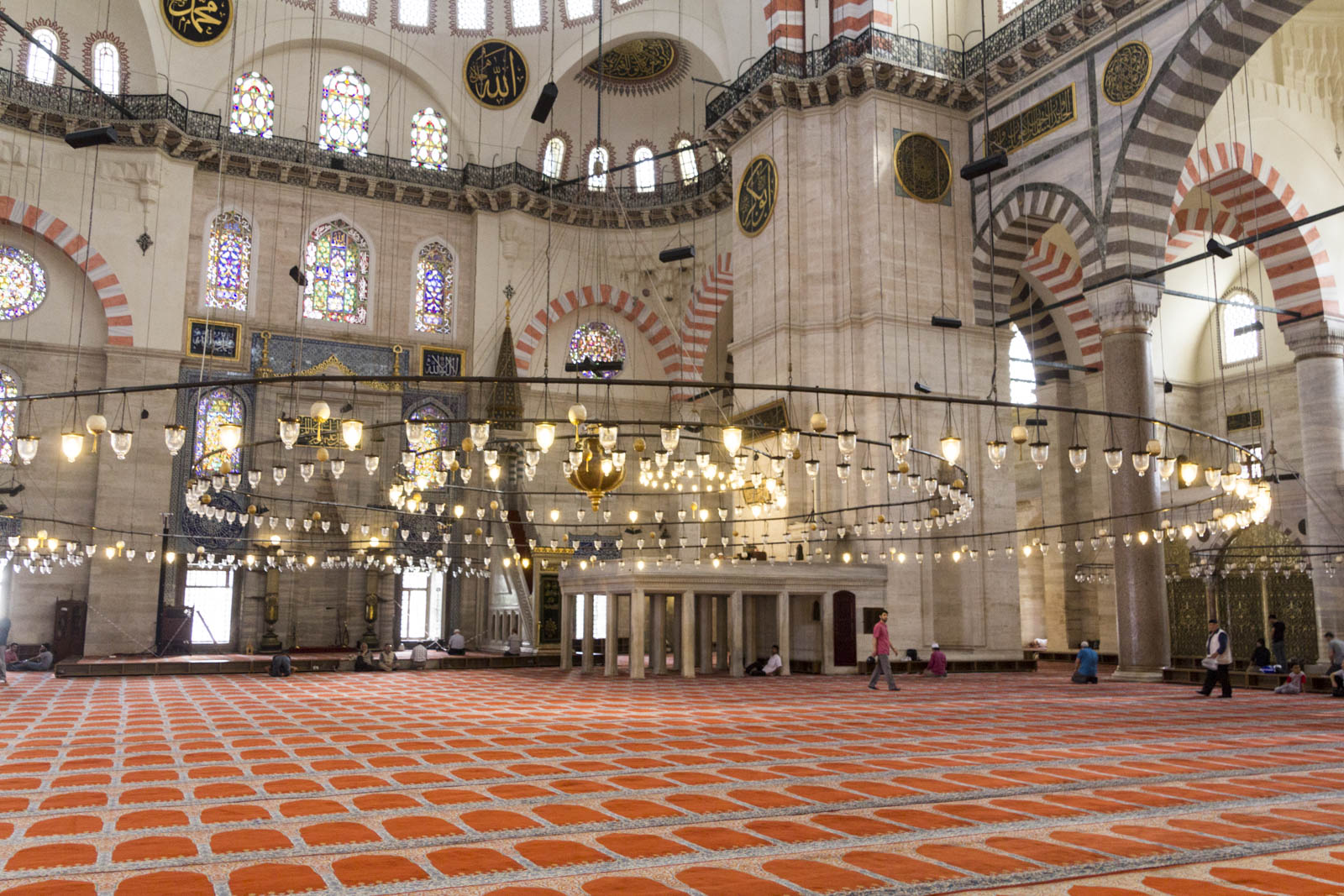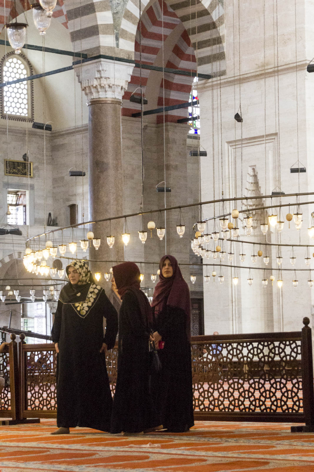 Et puis surtout, il y a eu la mosquée Süleymaniye. Celle-là nous a vraiment épatée. De l’extérieur, elle en impose déjà beaucoup avec ses dômes en cascades, ses colonnes, ses fenêtres, ses balcons et ses minarets. Et sa décoration intérieure, avec ses magnifiques calligraphies arabes, ses faïences et ses immenses lustres qui tombent du plafond, est également d’une finesse absolument remarquable. Mais en plus, à l’intérieur, des volontaires sont là pour répondre à toutes vos questions sur la religion ou la mosquée. Et ils distribuent même de petits bouquins explicatifs, traduits dans de nombreuses langues, pour aider chacun à mieux comprendre ce qu’est l’islam. Une initiative positive et pleine de sens.