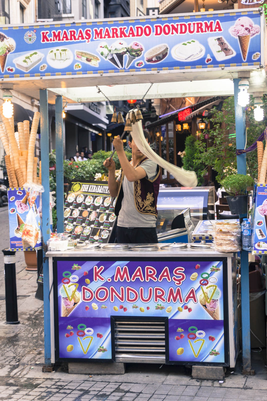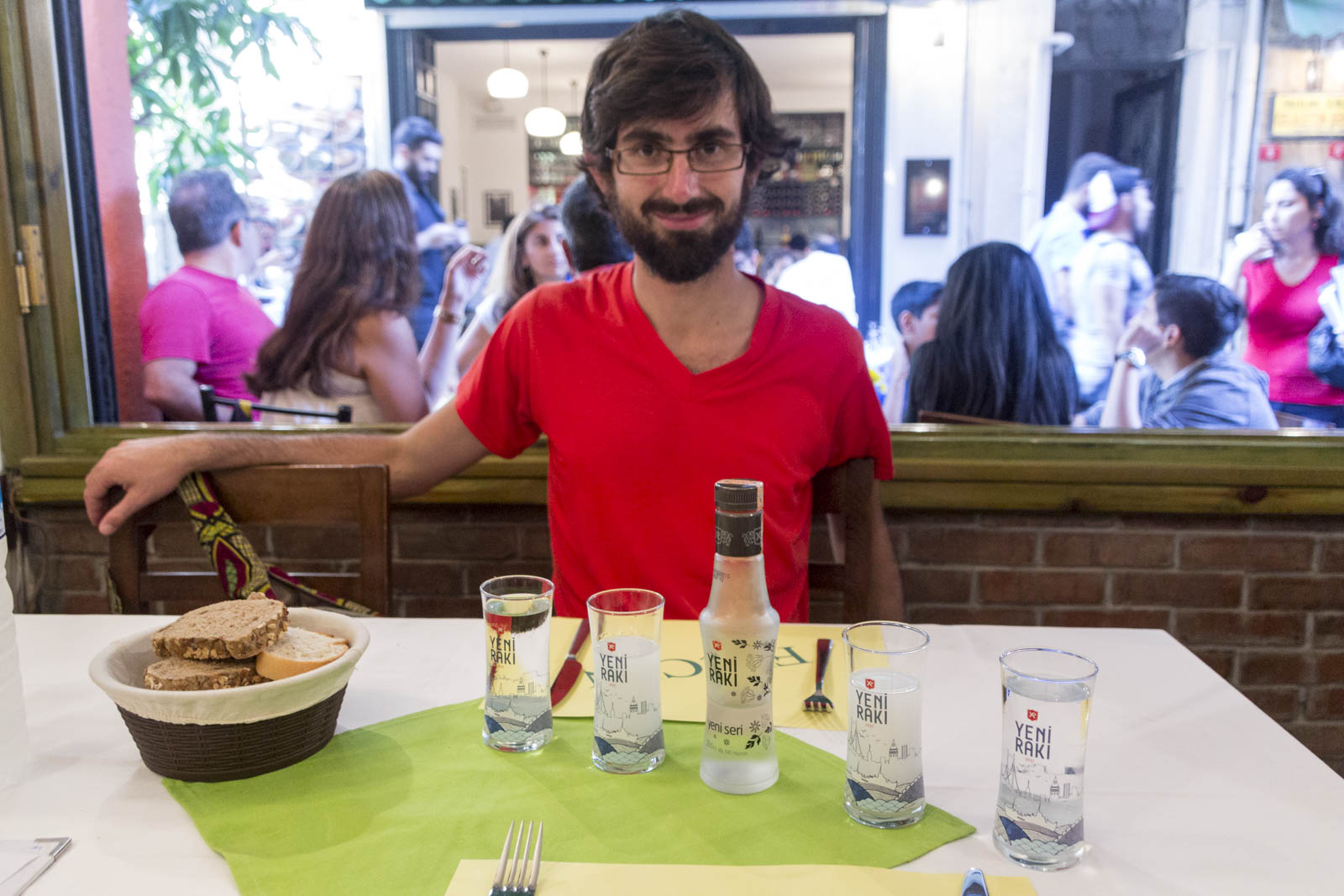 Pour notre première soirée de retour en Europe, Sinem nous emmène dans le quartier de Galata, le plus animé de la ville, et notamment la bouillonnante avenue Istiklal qui mène jusqu’à la place Taksim, un des cœurs de la ville. Là, des milliers de personnes déambulent jour et nuit, sur une large avenue piétonne où circule également le seul tramway de la ville. Jusque très tard dans la nuit, les nombreux restaurants, cafés, magasins et marchands de glaces restent ouverts et on se laisse porter par l’ambiance sympathique et bon enfant qui émane de ces rues. Les gens s’amusent, consomment, ou tout simplement se baladent, sans la peur de se faire harceler, voler ou agresser en pleine nuit, chose qui était devenue rare ces dernières semaines. Nous voilà plongés en plein dans l’ambiance d’un samedi soir stambouliote, au fort parfum de Méditerranée !
