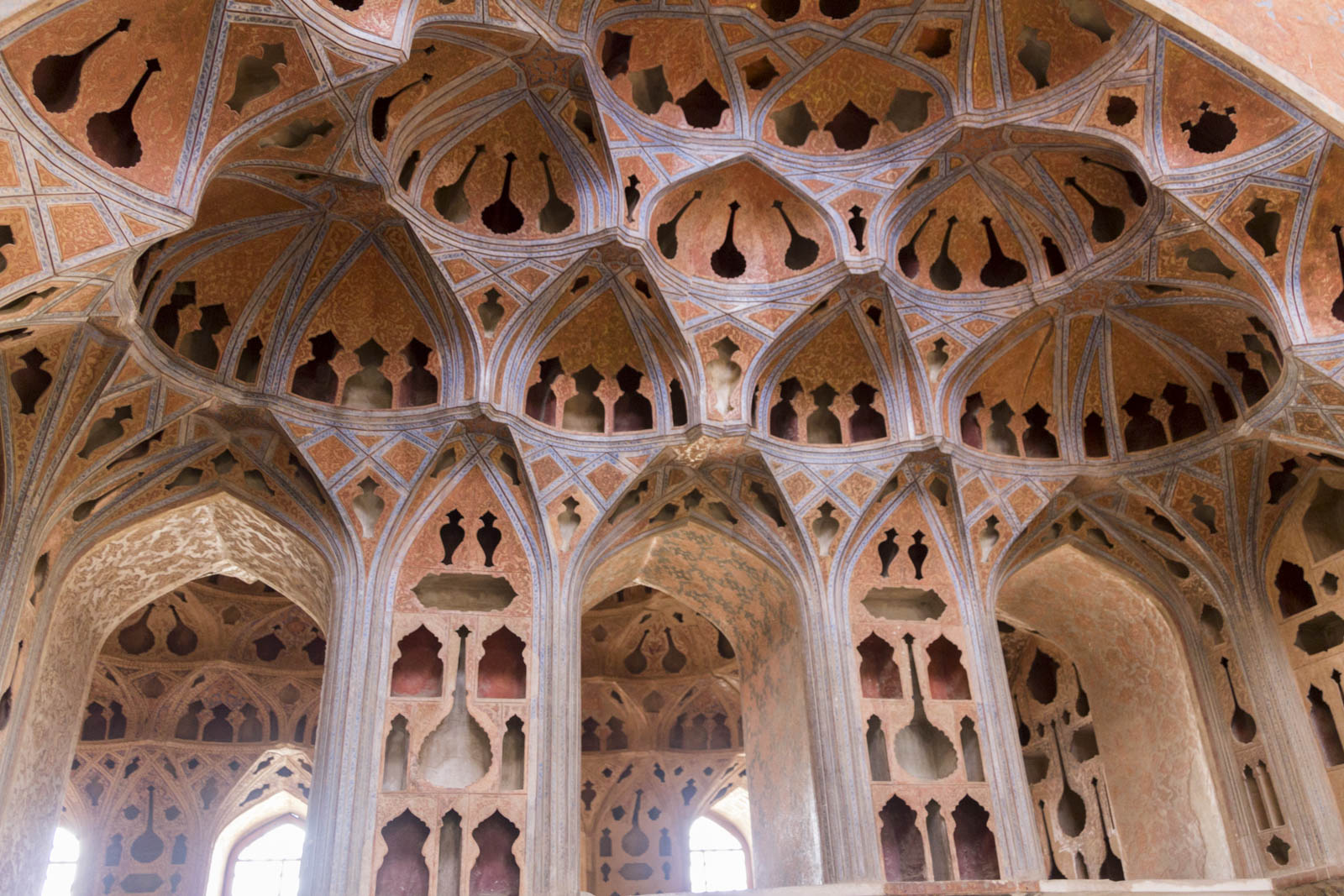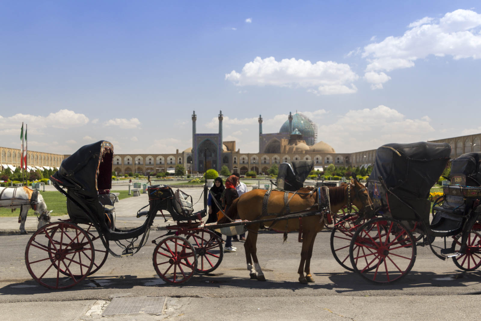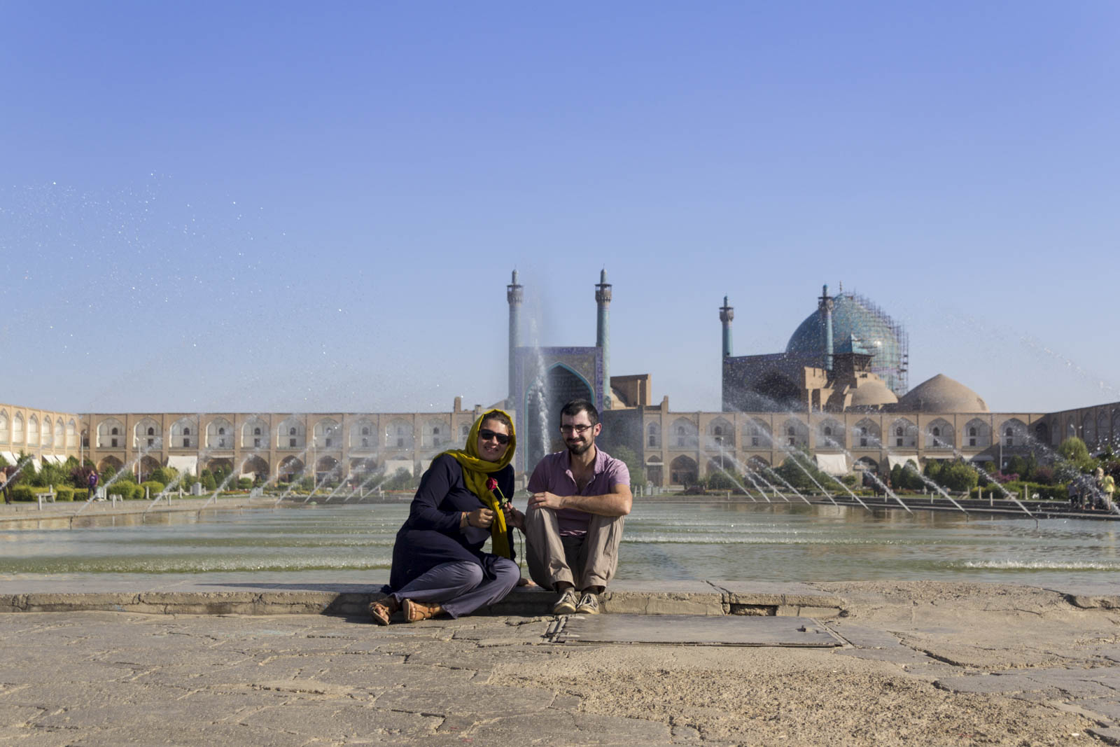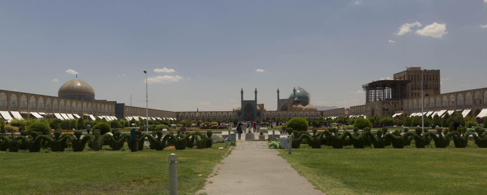 Tout en haut de celle-ci, enfin, on tourne à droite sur la rue Sepah, on passe devant de beaux jardins et le célèbre palais de Chehel Sotun et ses 40 colonnes, avant d’arriver sur la magistrale place Naghsh-e Jahan, le cœur de la ville, la deuxième place historique la plus grande du monde après la place Tian’anmen à Pékin.
