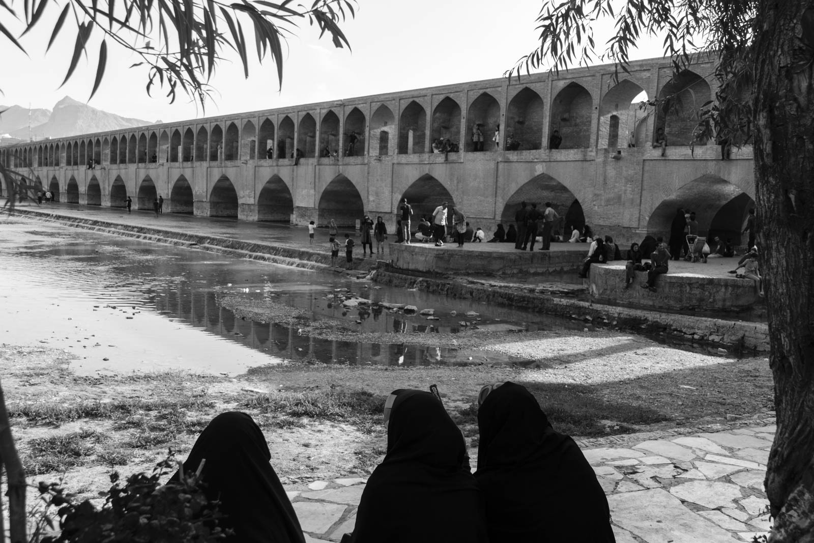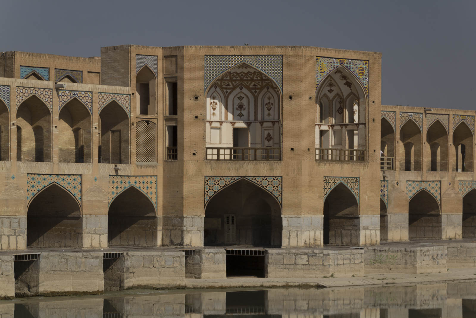 La ville d’Esfahan est articulée autour de ses ponts anciens qui enjambent la rivière Zayanderood. De bien belles infrastructures qui, à la lueur du crépuscule, lorsque leurs nombreuses arches se reflètent dans le peu d’eau qu’il reste à la rivière en cette saison, offrent de splendides images. Après une belle balade au bord de la Zayanderood et avoir traversés les ponts Khajoo et Choobi, on arrive au Si-o-se pol, le pont aux 33 arches, le pont historique le plus connu d’Esfahan. De là, on remonte l’avenue Chahar-Bagh et ses nombreuses enseignes. Malheureusement pour nous, ici aussi, d’importants travaux et un étonnant projet de métro ont fait perdre un grand intérêt à cette avenue.
