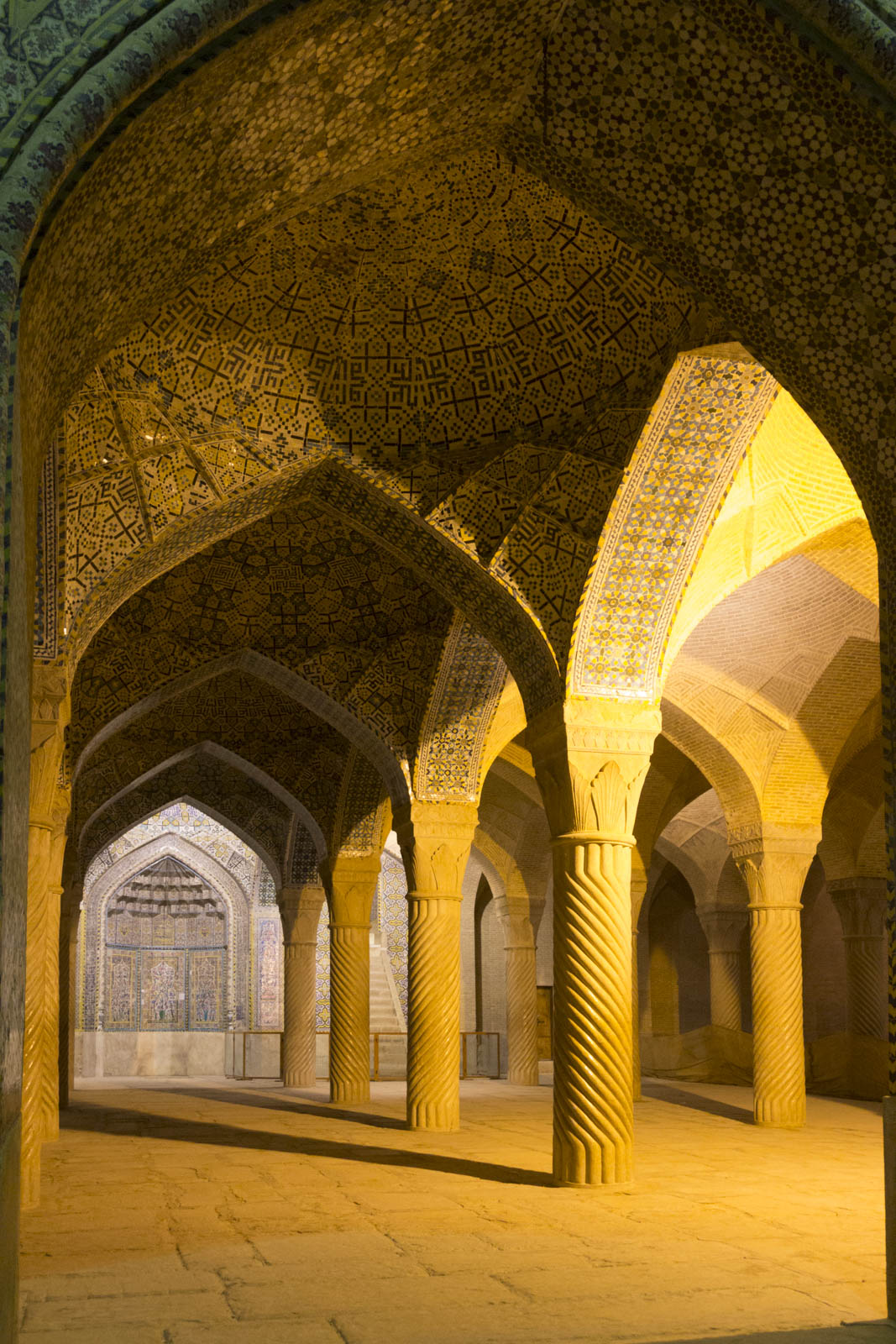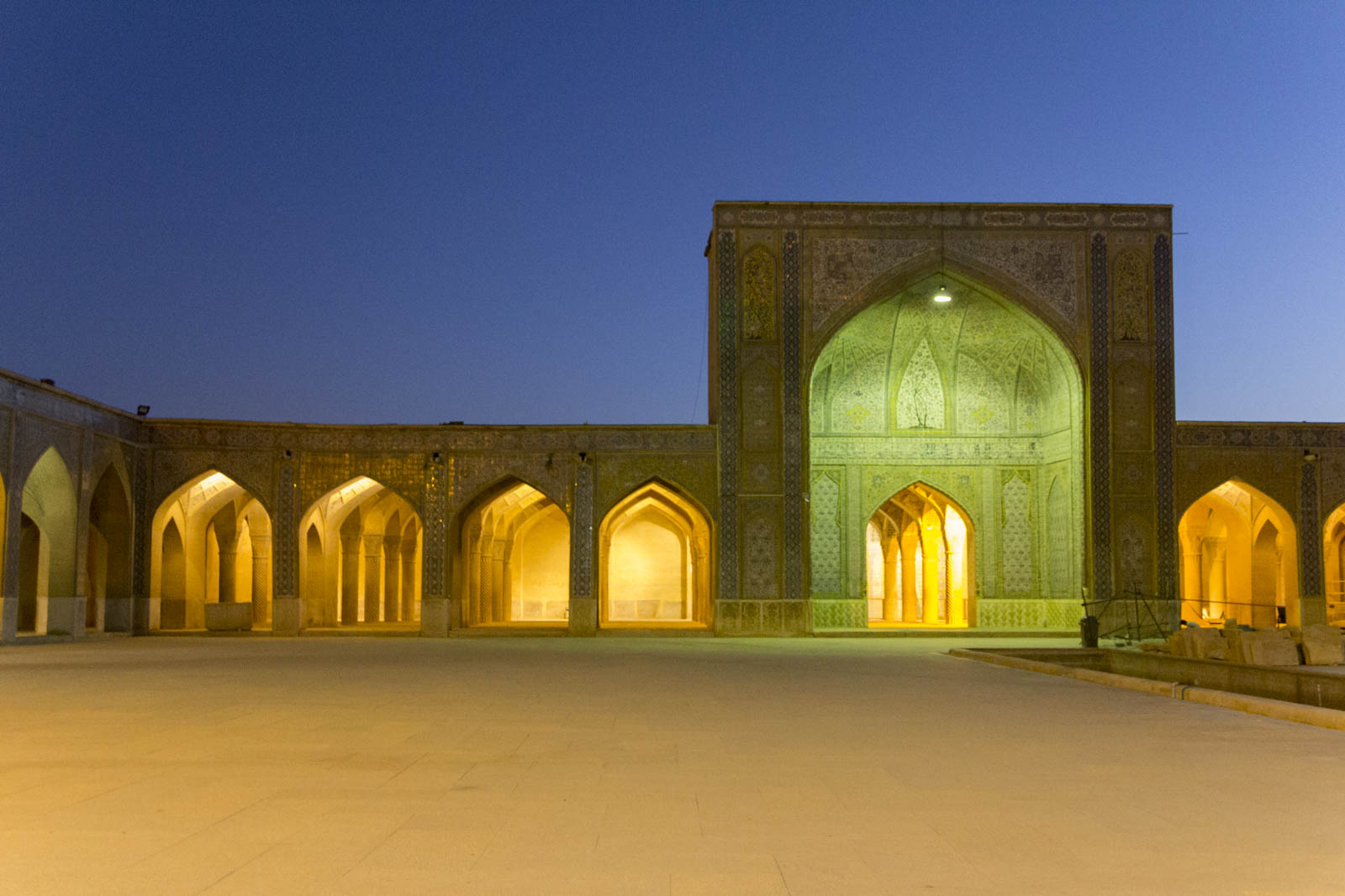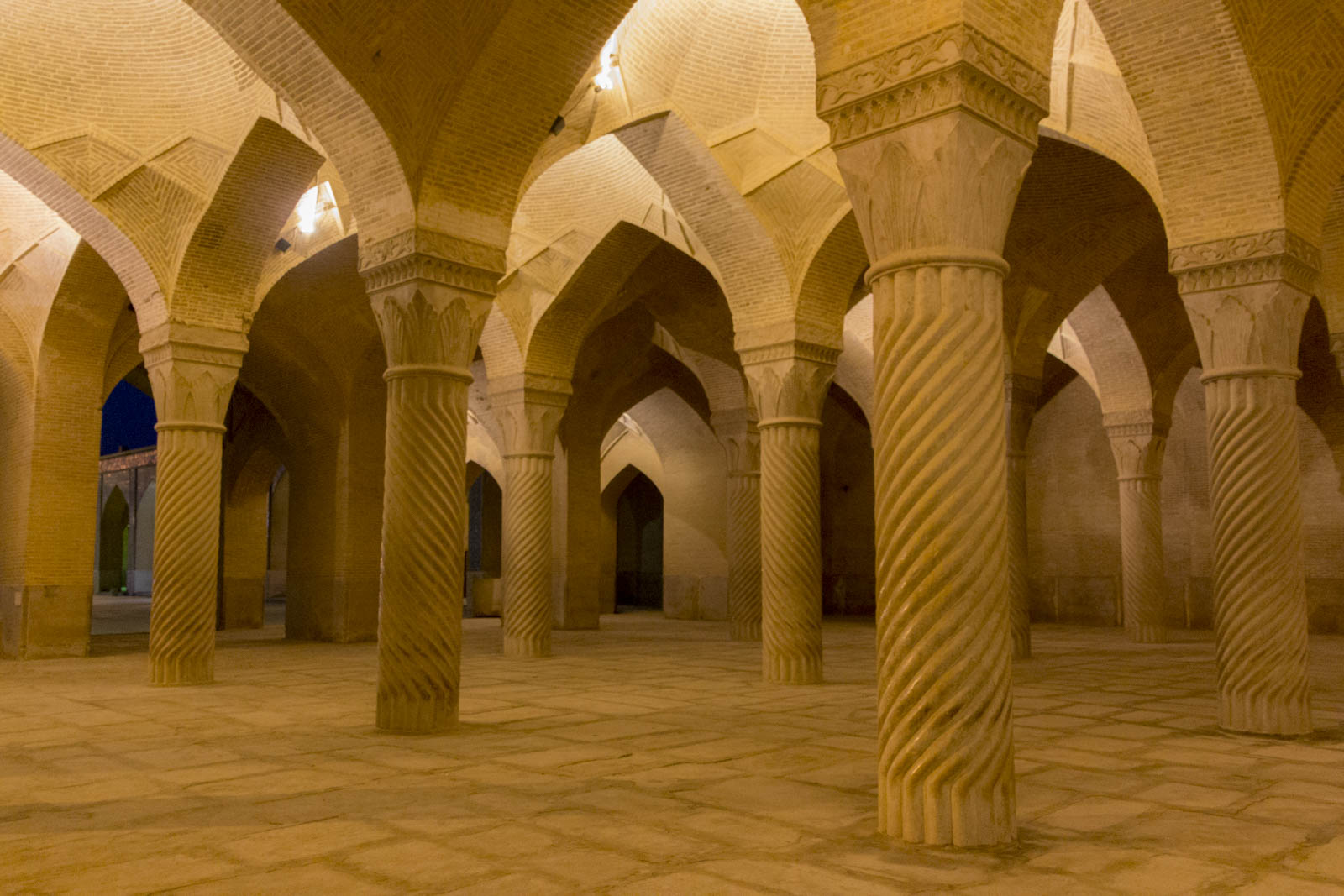 Adossée au grand bazar, la mosquée Vakil, juste à côté de la citadelle, est également remarquable par ses nombreuses voûtes recouvertes de faïences peintes et sa grande salle de prière aux colonnes ornées de magnifiques sculptures.