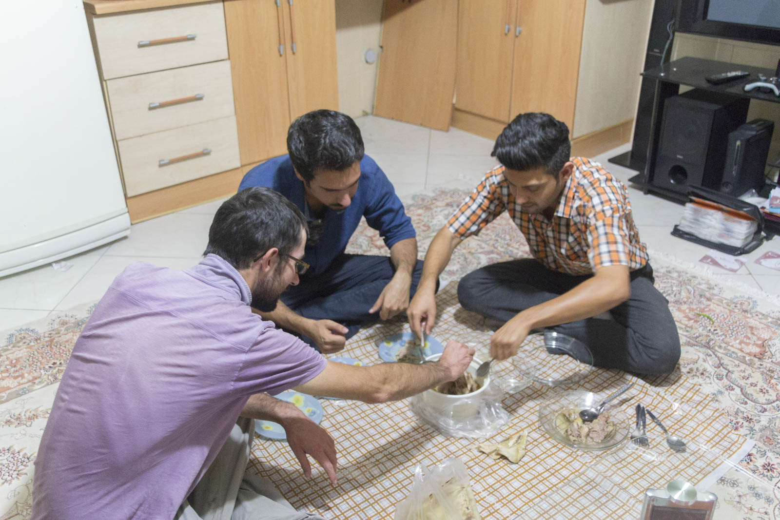 Et puis, à Esfahan, on a finalement eu l’occasion de s’y mettre. On cherchait une idée de repas rapide et convivial pour passer, enfin, une soirée un peu tranquille avec nos couchsurfers. Alors, une fois écartées les options pizzas et hamburgers, ils se sont regardés dans les yeux, et une étincelle de bonheur a jailli :