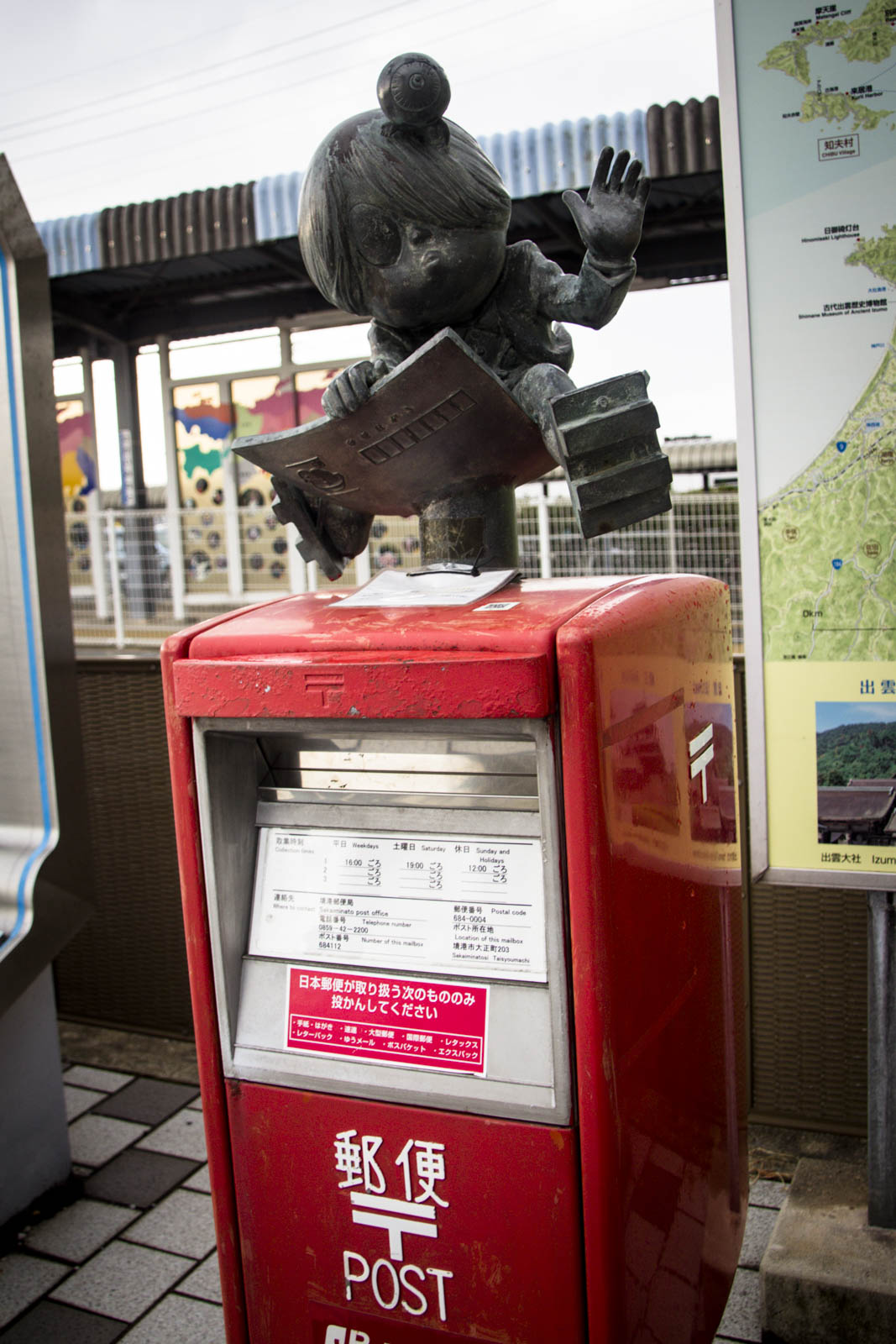 Sakaiminato est la ville d’un – apparemment très célèbre – auteur de mangas, Shigeru Mizuki. Son manga le plus connu est Ge-ge-ge no Kitaro (Kitaro le repoussant), une histoire de monstres aux personnages un peu délirants.