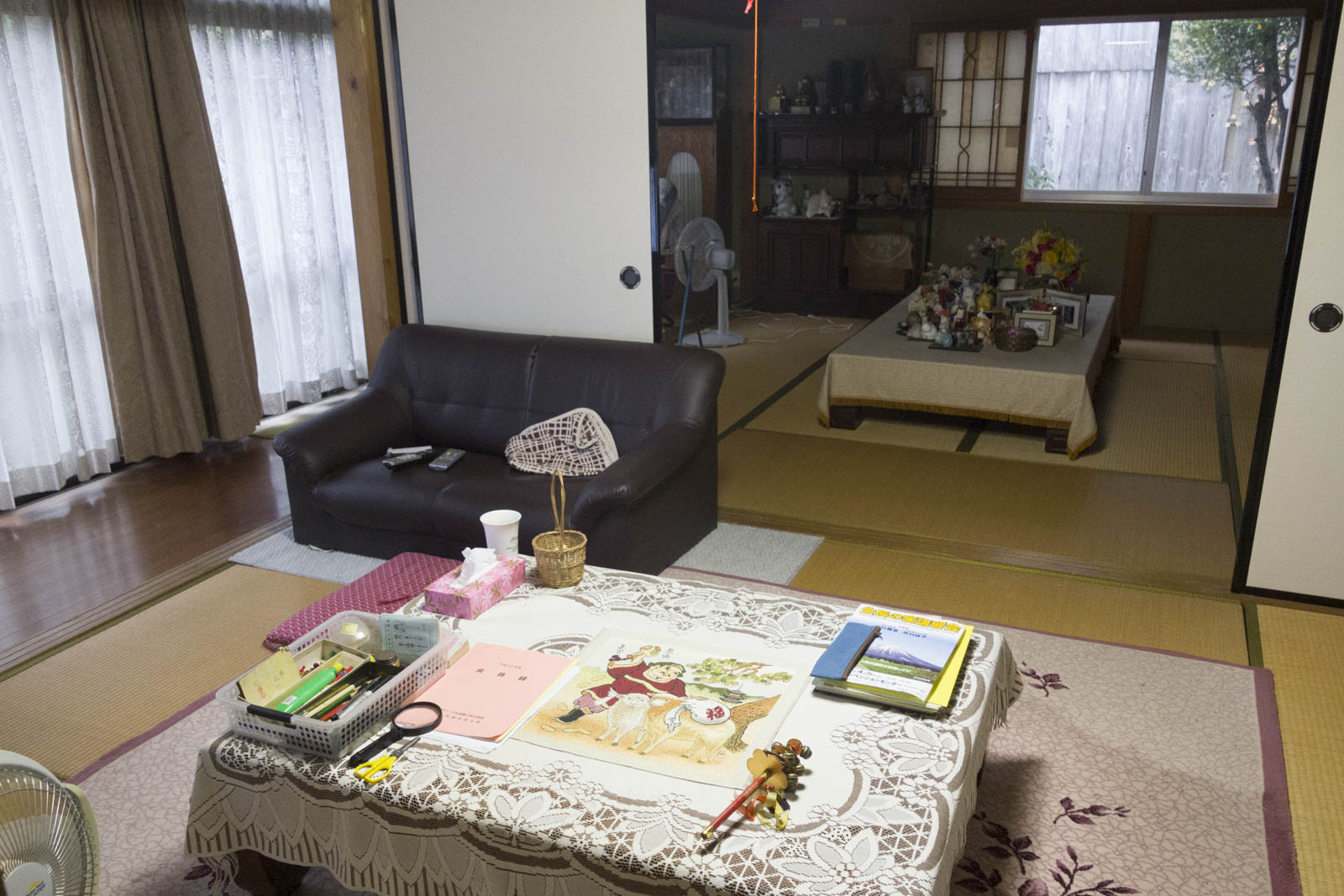 Le temps semble s’être arrêté ici. Il faut dire que Sakio a 63 ans. Et il vit avec son père de 99 ans ! Wahou. Cet homme qui marche, lit, a encore toute sa tête et surtout prie à genoux pendant de longues minutes nous impressionne.