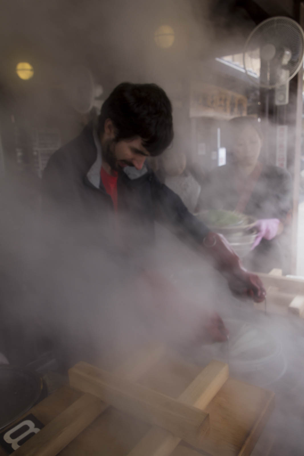 En revanche, s’il y a bien une expérience qui nous a plu à Beppu, c’est celle de la cuisine (on ne se refait pas…) à la vapeur des sources chaudes. Voilà une utilisation originale et intéressante de cette énergie géothermique.