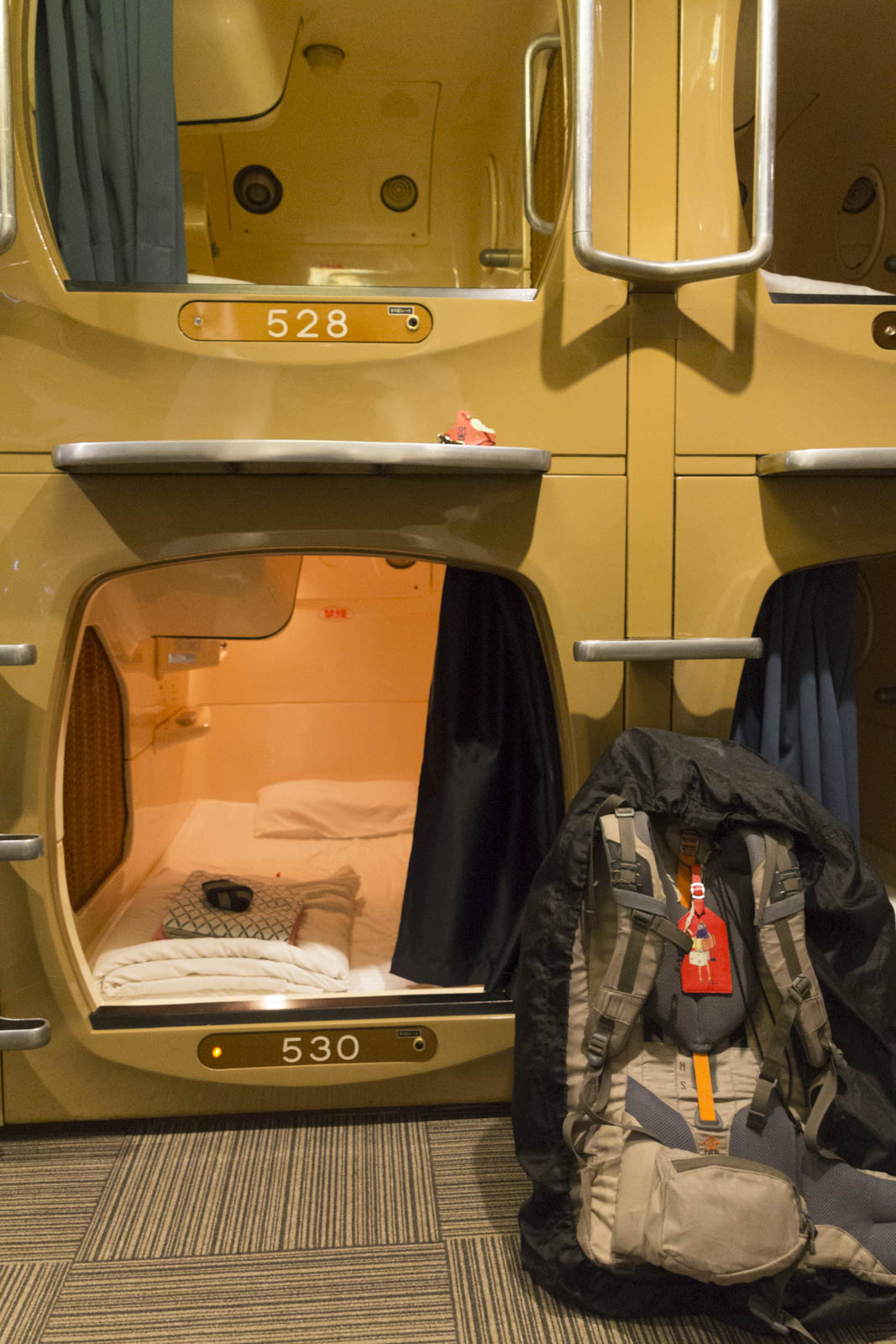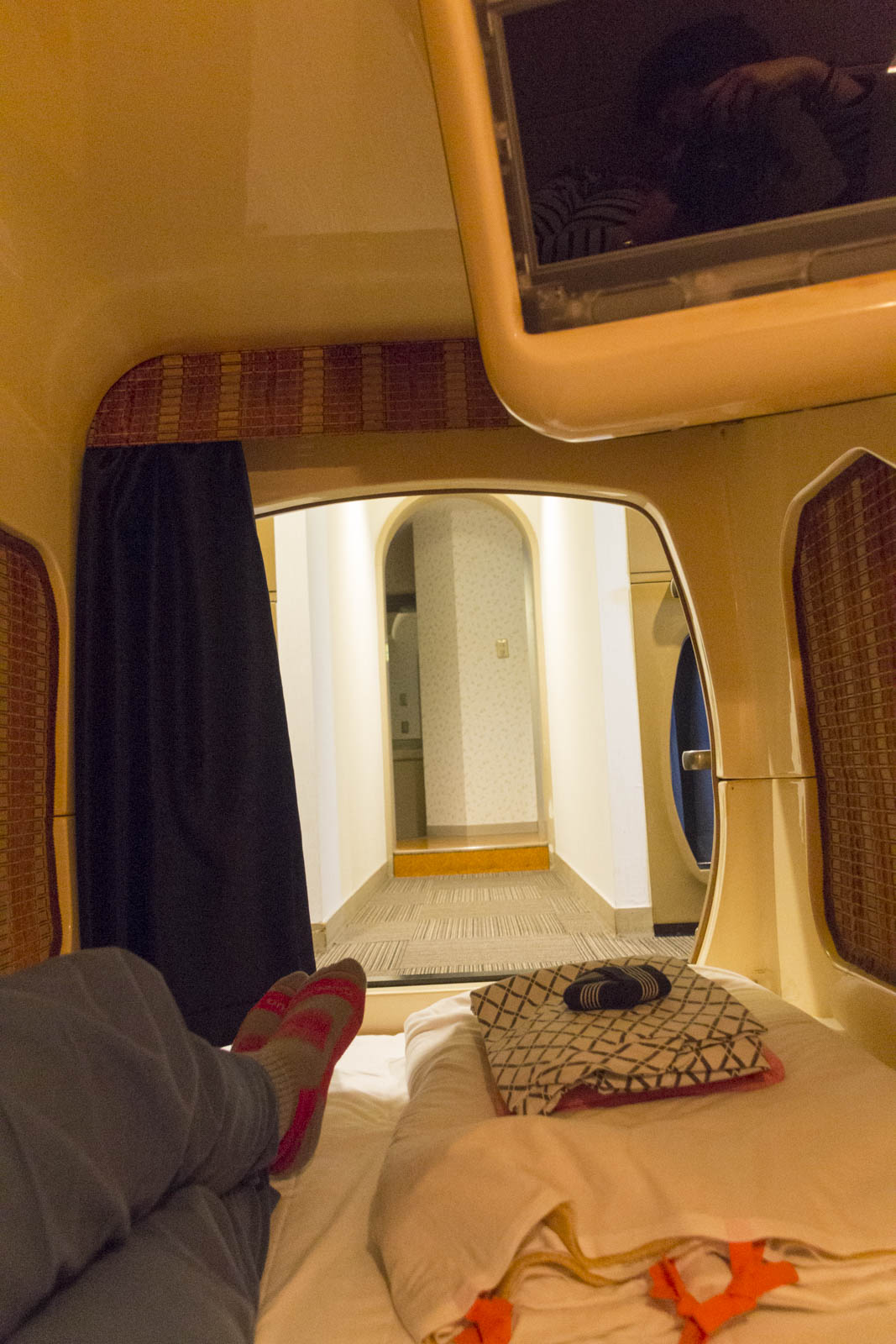 Point de chambres ou de dortoirs, mais un alignement de capsules fermées par un rideau. Elles font 2m de long pour 1m de large et 1m de haut.