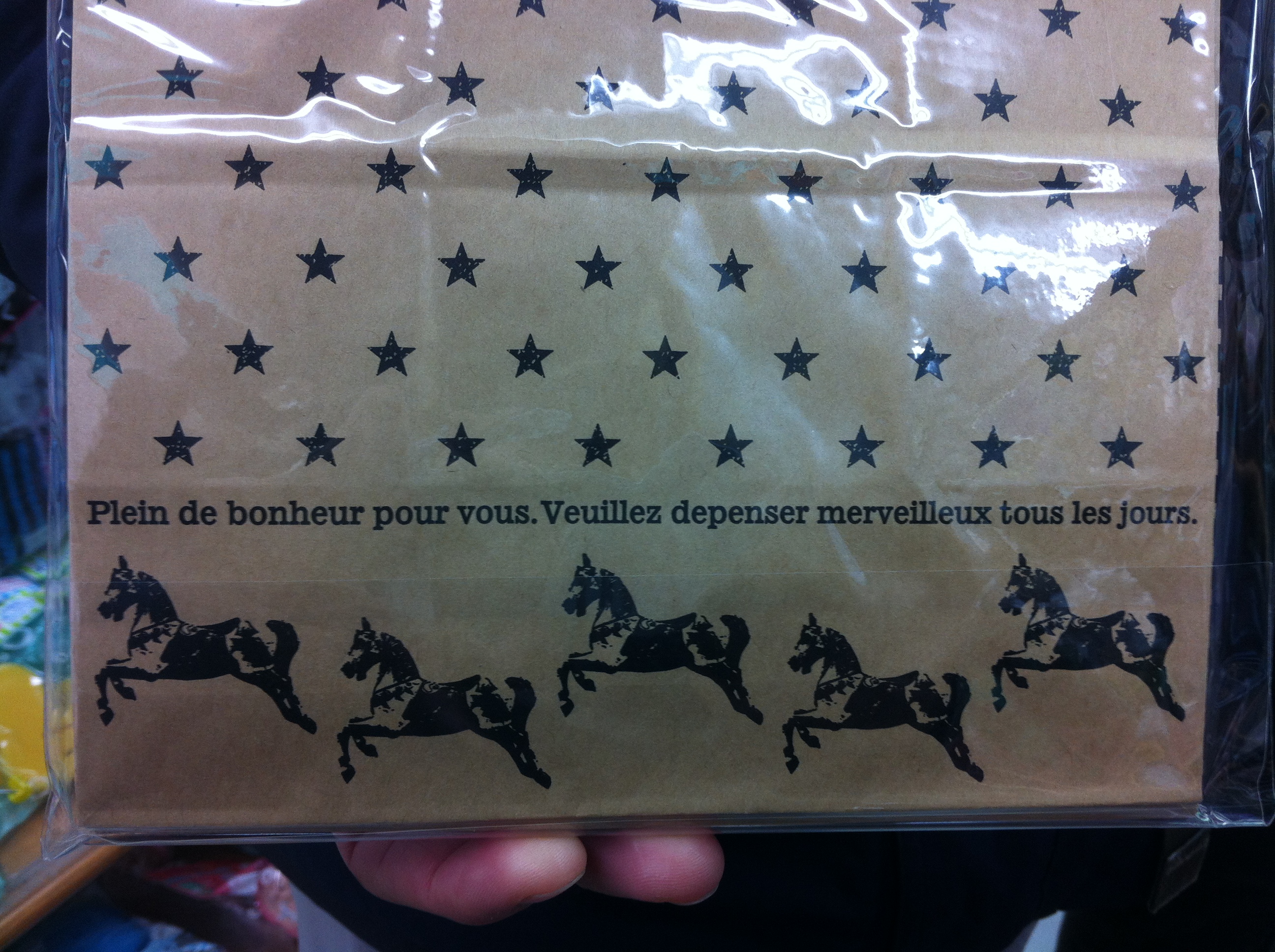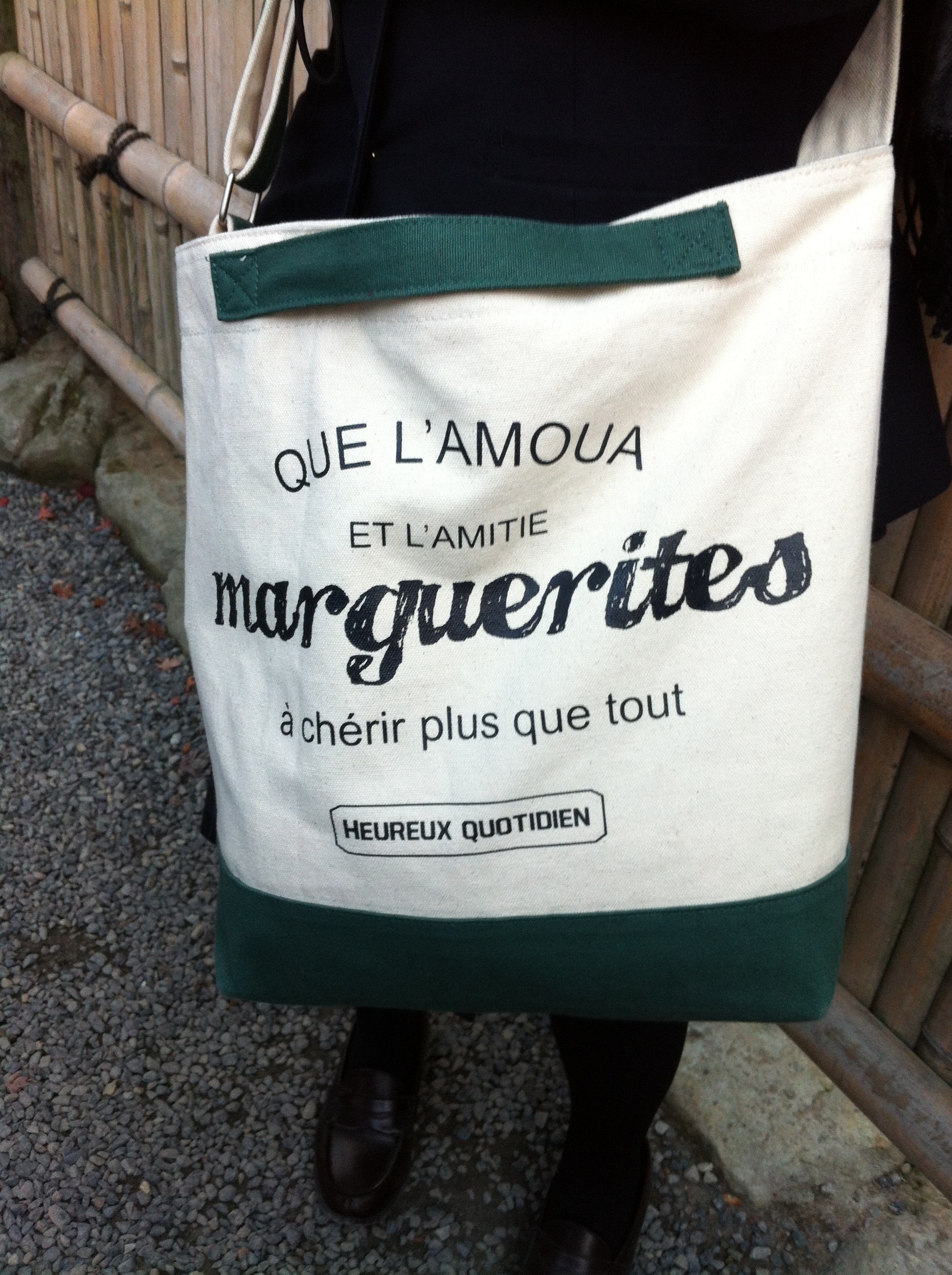 Alors ils adorent utiliser des mots français, pour les enseignes de magasins, pour de petites citations sur des sacs, des tasses ou autres.