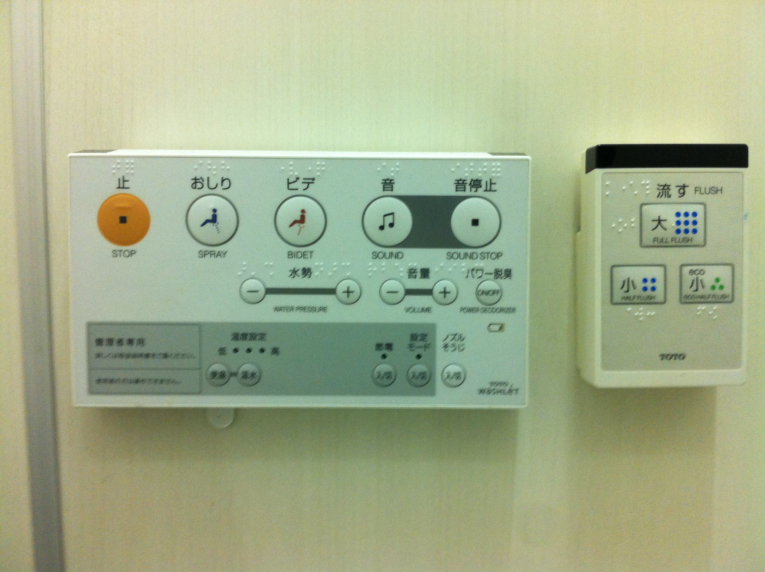 Ensuite il y a ce qu’ils appellent « washlet » ou « western toilet » mais que je qualifierais plutôt de « advanced toilet » . Rien ne vaut l’image. Un bijou de technologie !