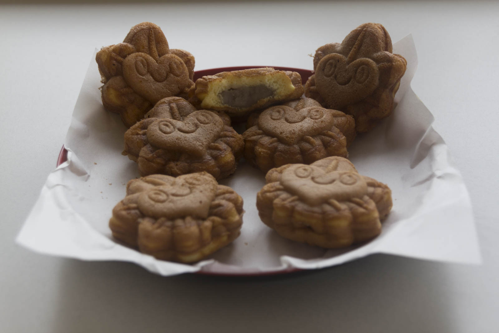 - Le taiyaki, un gâteau en forme de poisson, fait d’une pâte à gaufre fourrée d’anko. Existe aussi avec d’autres goûts.