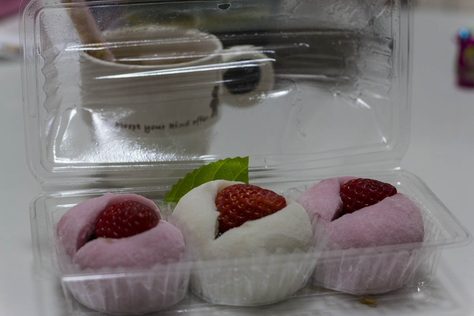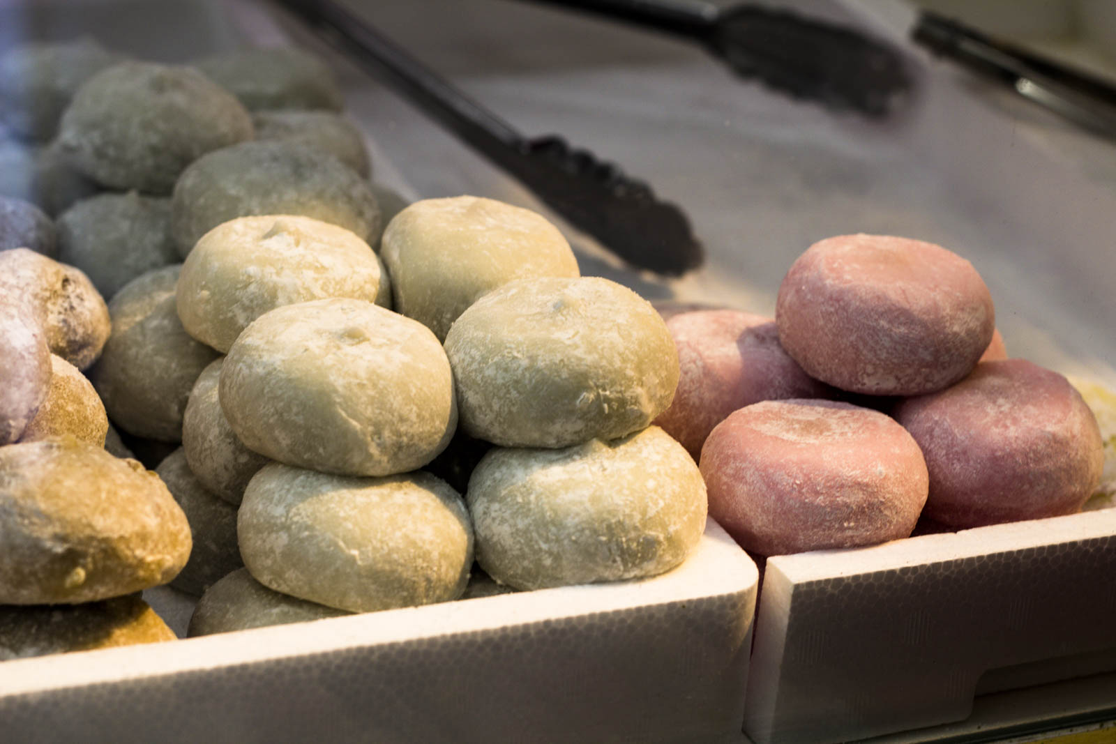 - Les mochis (ou daifuku), dans lesquels une boule de mochi est garnie d’anko. La pâte à mochi peut être verte (thé vert) ou rose (fraise), en général, et même parfois avec une fraise dedans. Délicieux