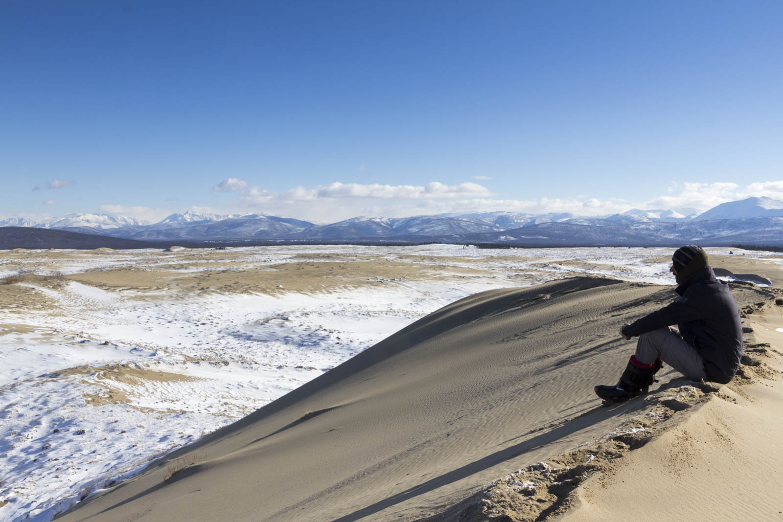 C’est le grand jour pour aller sur les dunes de Sibérie, et une somptueuse journée nous attend. La grisaille de la veille a laissé place à un magnifique ciel bleu, un grand soleil, et par conséquent un frisquet -14°C au mercure !