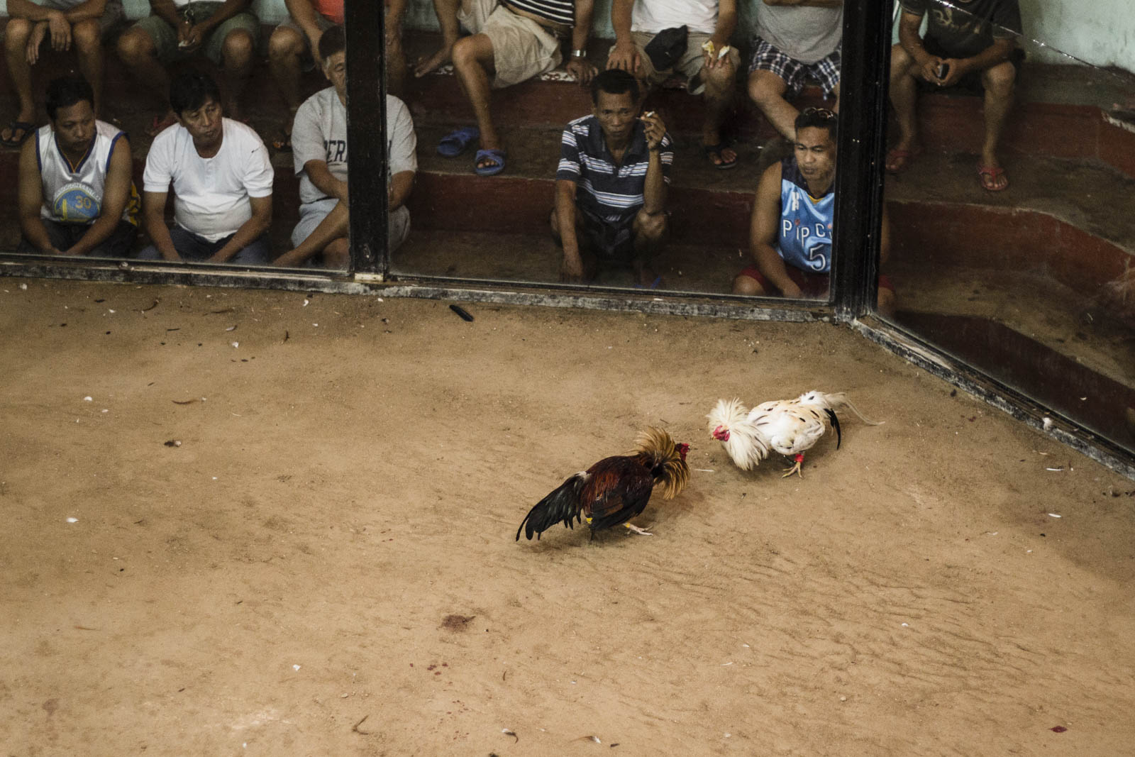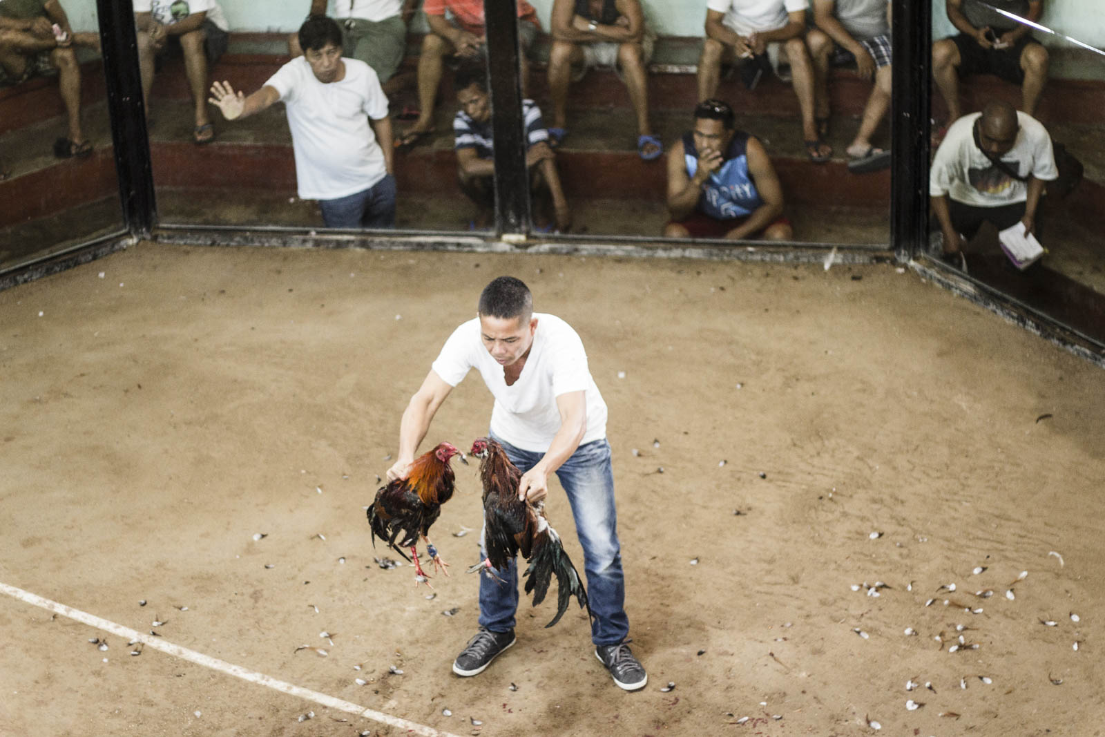 On pense alors aux femmes de ces hommes. Peut-être sont-elles femmes de ménage à Hong Kong, ou exploitées dans des conditions terribles en Arabie Saoudite ou au Qatar, envoyant leur maigre salaire au pays pour faire vivre leur famille. Imaginent-elles que le fruit de leur labeur vient peut-être d’être perdu dans un combat de coq ? Car ce sont de gros montants qui circulent, des billets de 500 ou 1000 pesos jetés comme des boulettes dans l’arène, quand les salaires les plus bas descendent à 5000 pesos par mois…