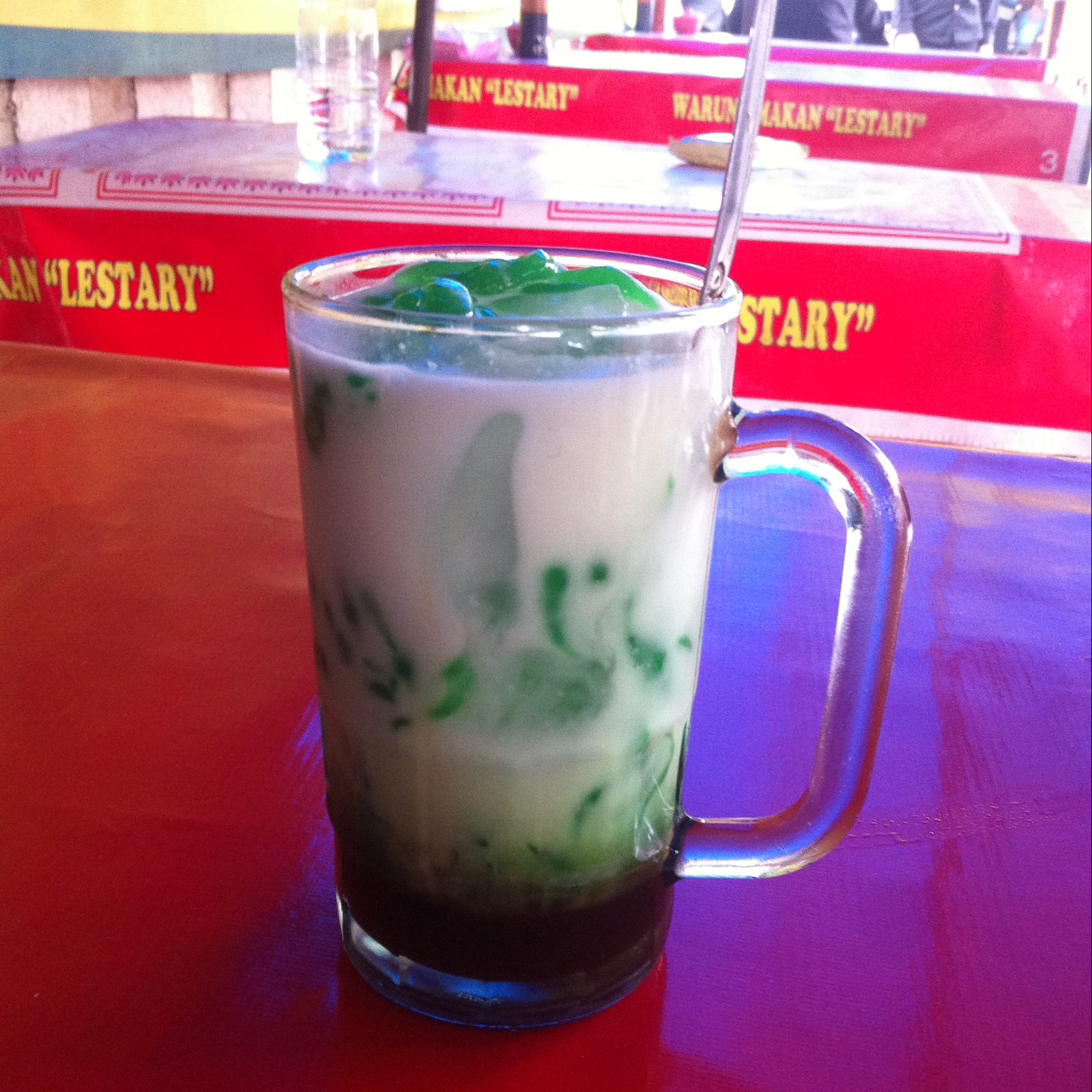 Notre préféré : le es pisang ijo, une soupe à la banane verte avec de la pâte de riz au pandanus, du tapioca et des morceaux de banane.