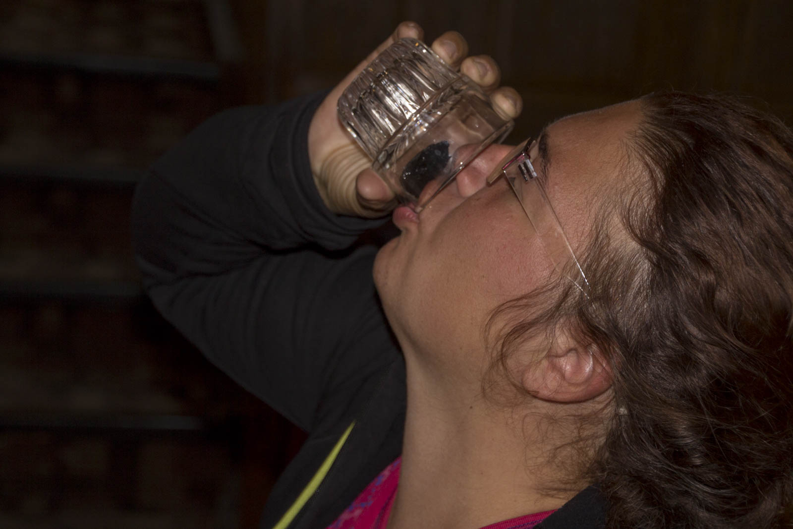 C’est dégoûtant, un morceau de peau séchée noirâtre terminé par un ongle tout aussi noir. Mais pas le temps de s’attarder, elle a déjà mis l’orteil dans notre verre.