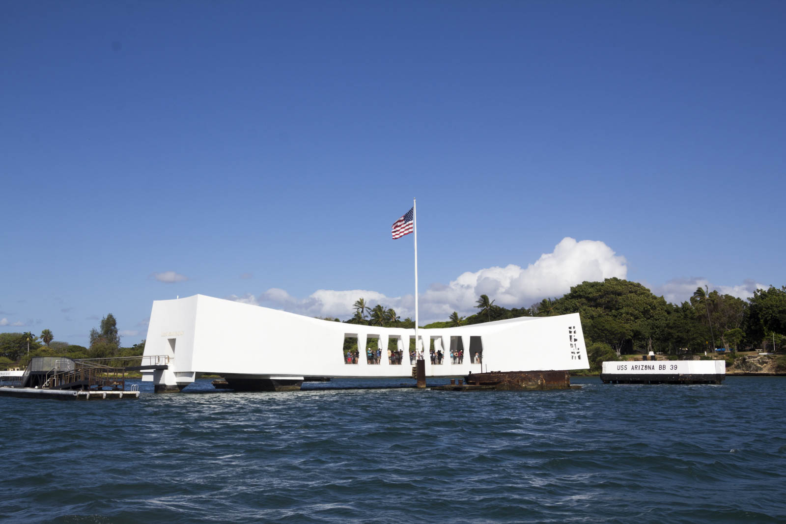 Un espace pour le souvenir de l’attaque japonaise sur Pearl Harbor, en décembre 1941, un événement qui a précipité l’entrée des USA dans la Seconde guerre mondiale.