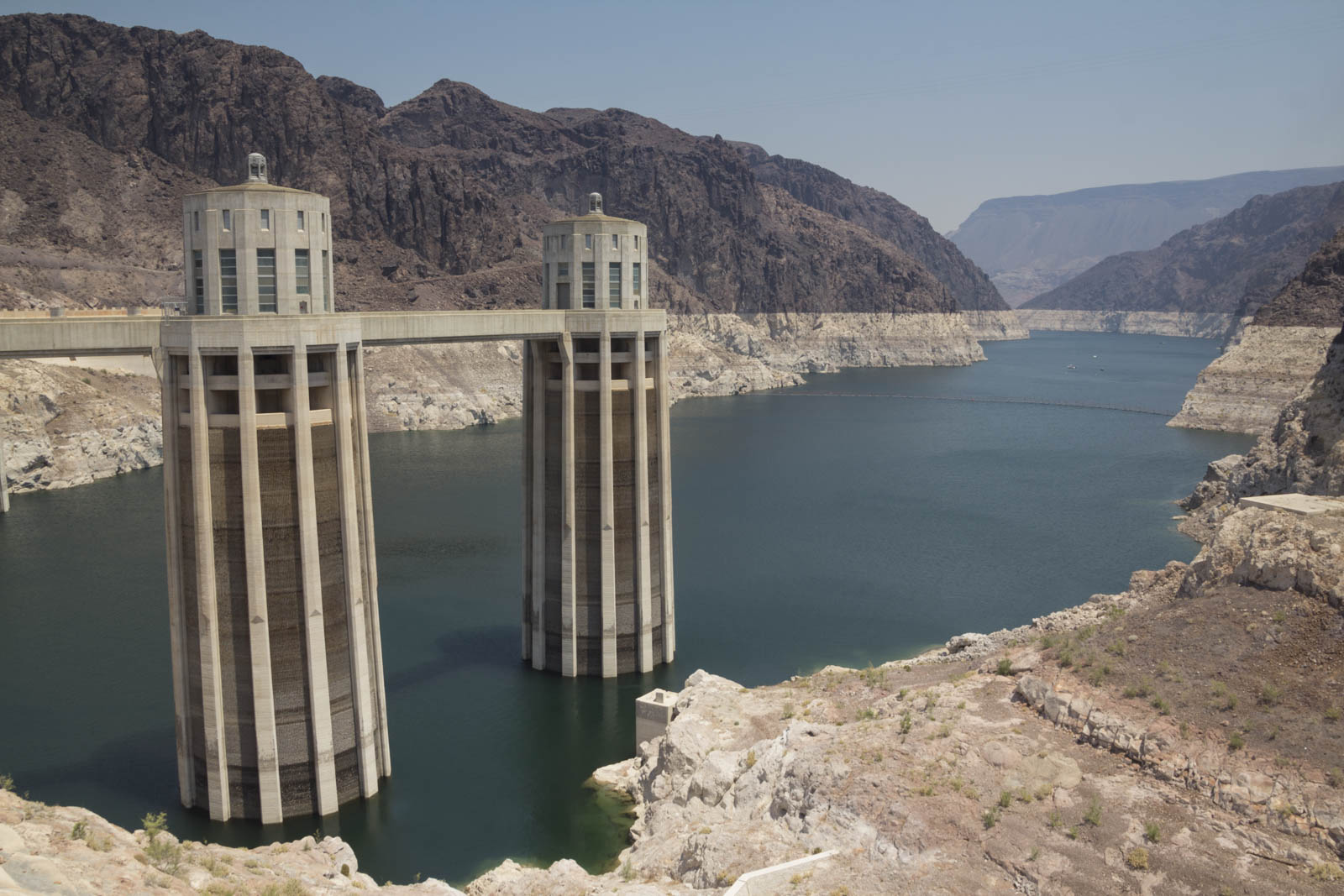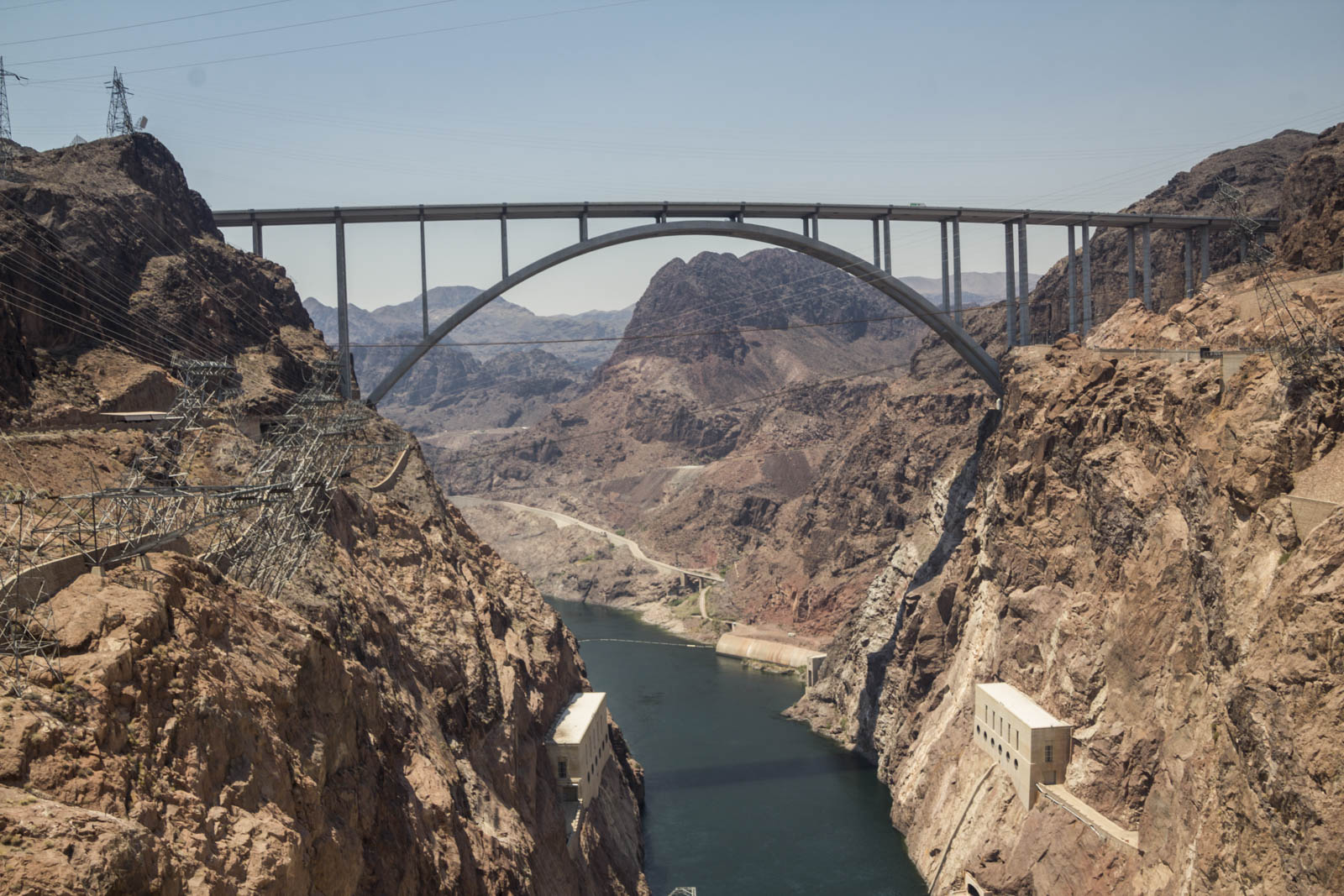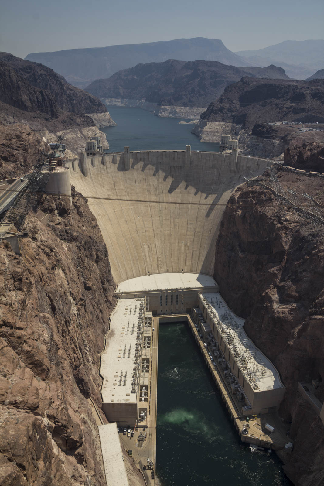 Le Lac Mead a été créé artificiellement par la mise en eau de l’énorme Hoover Dam (barrage), construit de 1931 à 1936 sur le fleuve Colorado. C’est aujourd’hui une zone de loisirs nautiques. Et le barrage, toujours en activité, une attraction touristique majeure, une énorme masse de béton de 220 mètres de haut, 380 mètres de long et 14 mètres d’épaisseur. Tout simplement colossal !