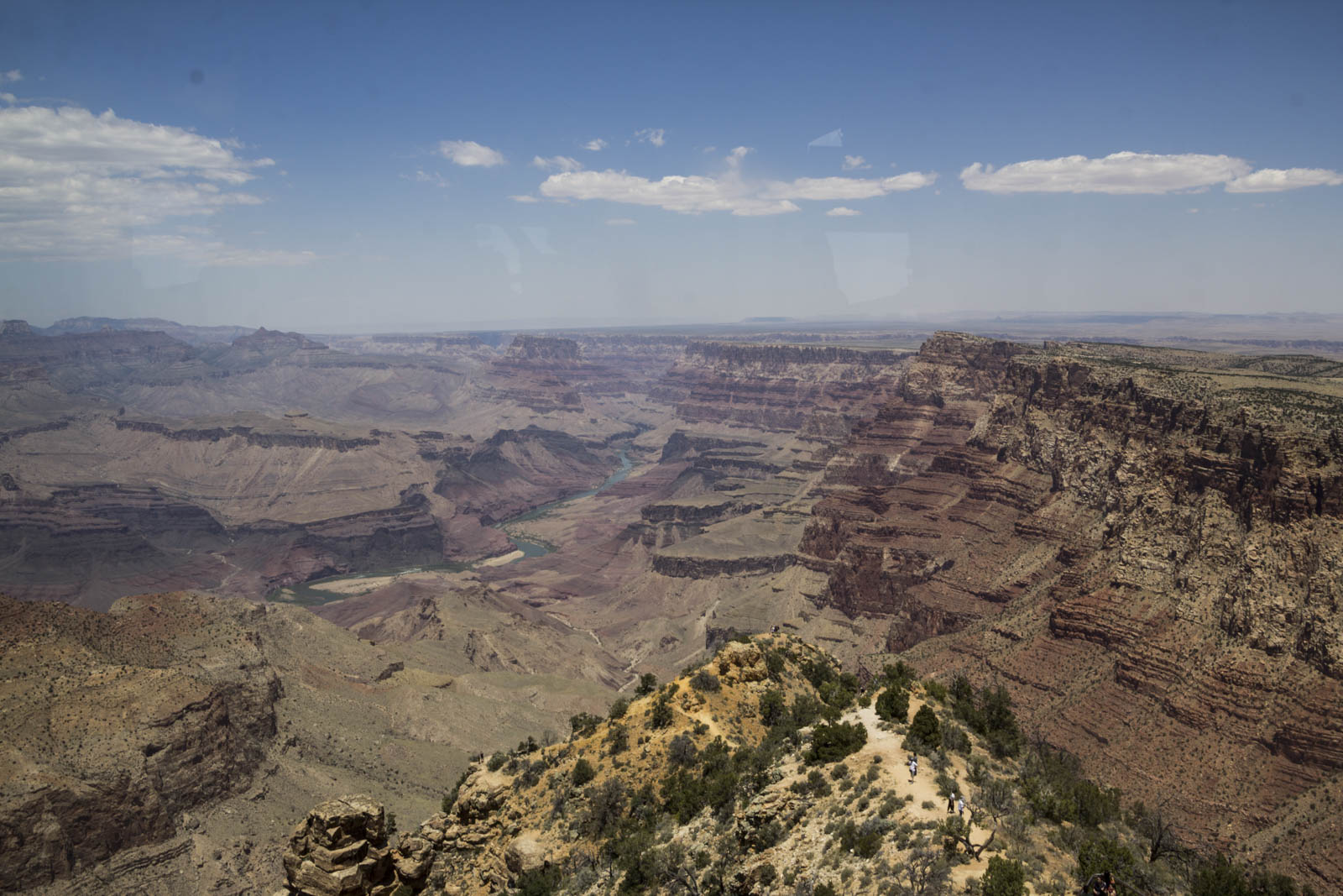 Un immense Parc dans lequel nous ne sommes pas rentrés, mais dont nous n’avons vu un tout petit bout depuis l’extérieur. Mais quel bout : Horseshoe Bend, une énième magnifique surprise laissée par le fleuve Colorado. Ici, toujours au fond d’un canyon relativement profond, il prend la courbure d’un fer à cheval. L’apparente faible profondeur de ses eaux et leurs couleurs verdâtres, sur le rouge des falaises, offrent un panorama… magique !