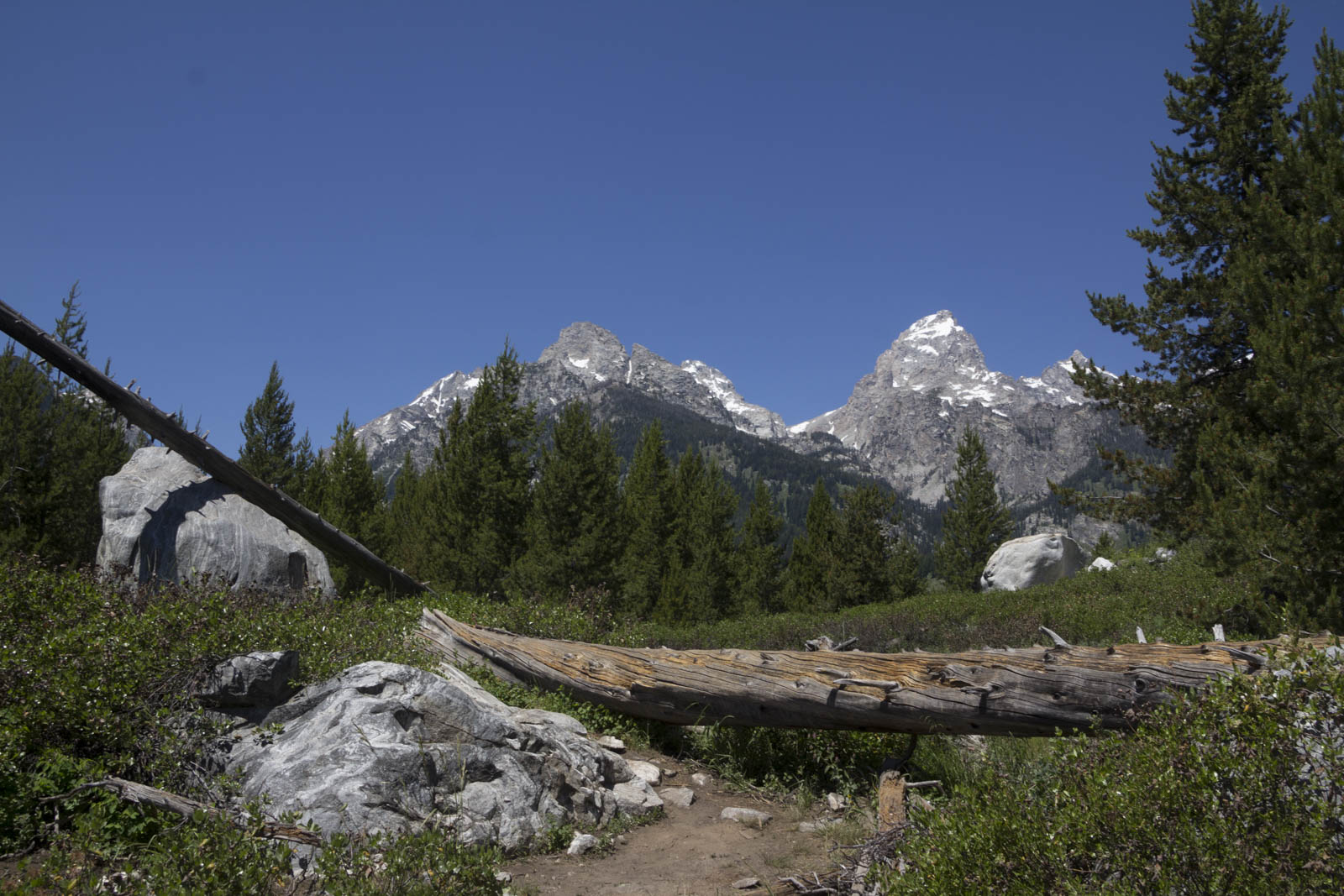 Une courte chaîne de montagnes abruptes qui s’élèvent d’un paysage de prairies, de vie sauvage et de lacs cristallins. Découverte au début du XIXème siècle par des trappeurs franco-canadiens, probablement inspirés par la rareté de leurs récentes interactions avec la gente féminine, ils baptisent ces montagnes « les Trois Tétons » : le Téton Sud, le moyen Téton juste au-dessus et le Grand Téton, le plus haut des pics de la chaîne, un peu derrière. Quant à la grande plaine qui s’étend vers l’Est, ils l’ont logiquement appelée la plaine de « Gros Ventre » !