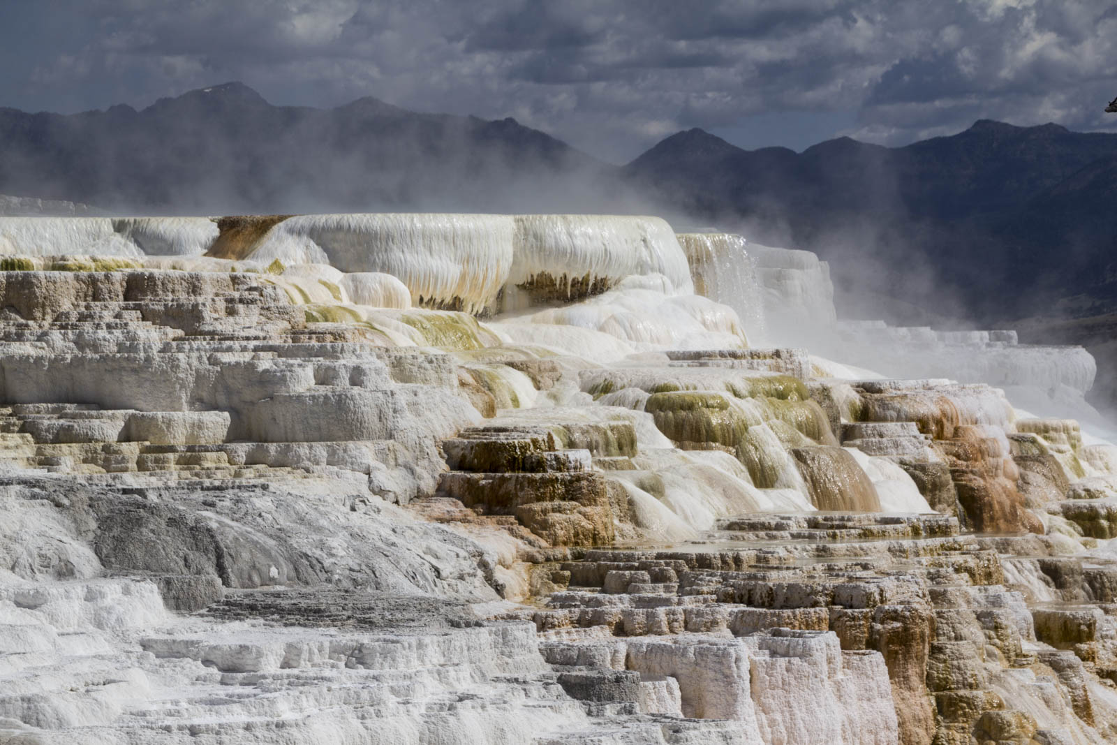 Créé en 1872, c’est le plus ancien Parc National du monde. Un site immense, d’une extrême diversité géologique et biologique. La caldeira du volcan Yellowstone occupe la partie centrale du Parc. L’activité volcanique y est toujours intense, avec une quantité impressionnantes de sources chaudes, de geysers, de boues en ébullitions, de fumerolles, de lacs acides et d’étranges formations calcaires. Mais on trouve de tout dans ce Parc : un canyon, des cascades, un lac de cratère, des forêts, des rivières et des vallées où s’épanouit une vie sauvage riche et abondante. Que c’est beau ! On pourrait y passer des semaines. C’est d’ailleurs ce que font beaucoup d’Américains qui y reviennent chaque année pour des vacances en famille.