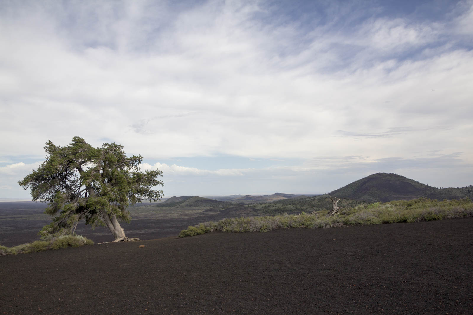 Si on était venu à Craters of the Moon il y a 2000 – 15000 ans, on aurait sans doute vu quelque chose de similaire au Parc National des volcans d’Hawaï d’aujourd’hui. Des cratères de magma en fusion, des coulées de laves incandescentes, des pierres qui jaillissent de la chaleur du cratère. Mais aujourd’hui, c’est juste un paysage désolé de lave séchée et de cendres, noir et rugueux. L’impression d’une autre planète, au beau milieu du pays des patates.