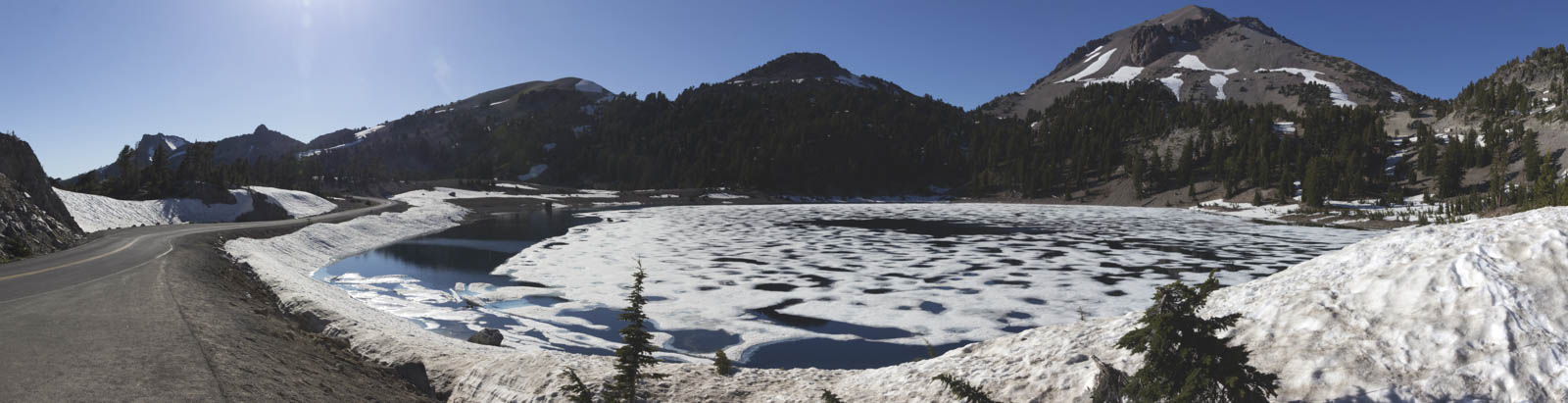 Plus au nord de la même chaîne, d’énormes éruptions volcaniques ont remodelé le paysage au cours des décennies, des siècles et des millénaires passés. On y trouve aujourd’hui quelques fumerolles et dégagements de vapeur, mais surtout des paysages et lacs de montagnes magnifiques. Et puis, c’est le lieu idéal pour faire une bataille de boules de neige en Californie, même en plein été.